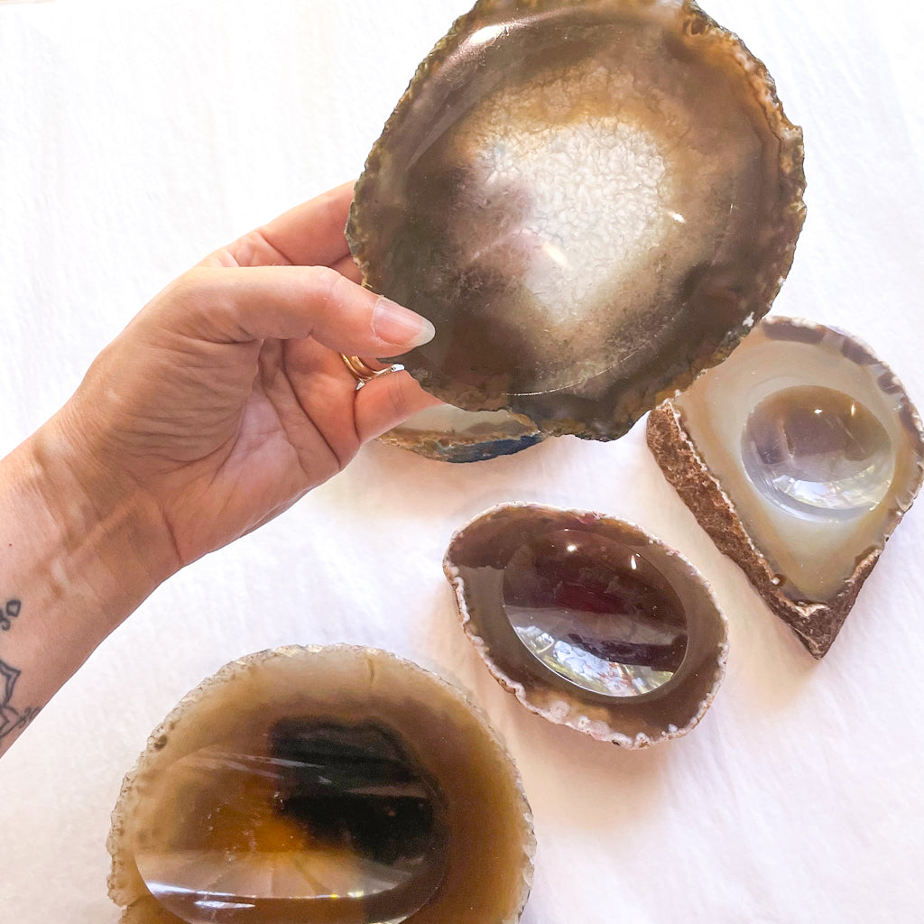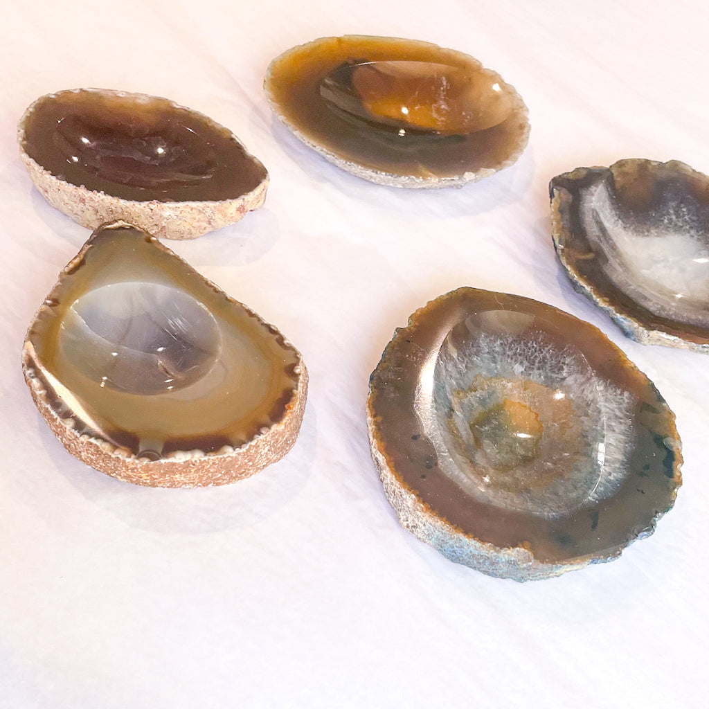 Purchase Agate slice slab crystal stone ring dish / trinket carved bowl online now from Six things shop Australia.