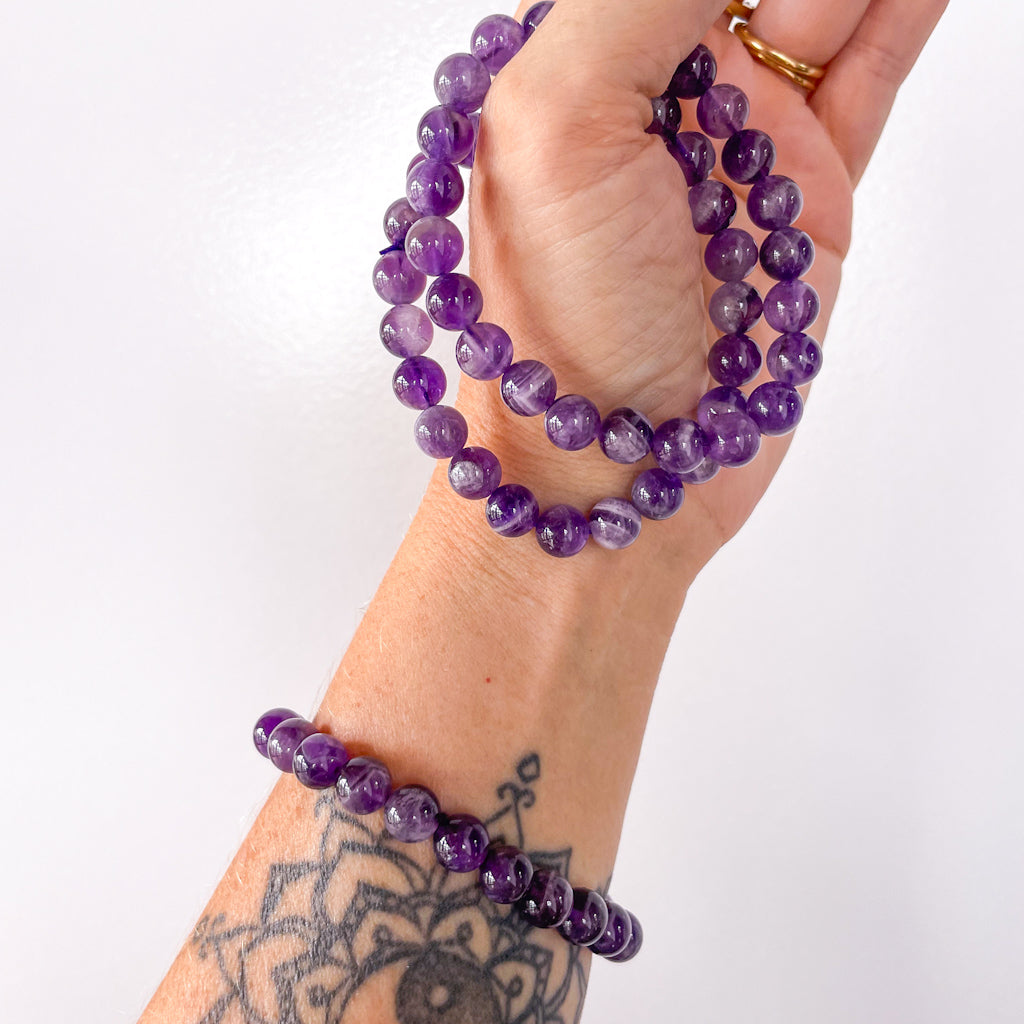 Purchase Amethyst bead crystal bracelet - calming online now from Six things shop Australia.