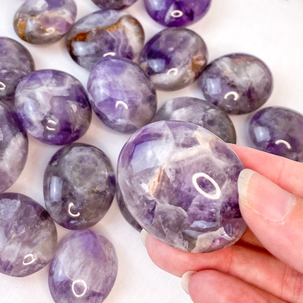 Purchase Amethyst Phantom Chevron crystal palm stone online now from Six things shop Australia.