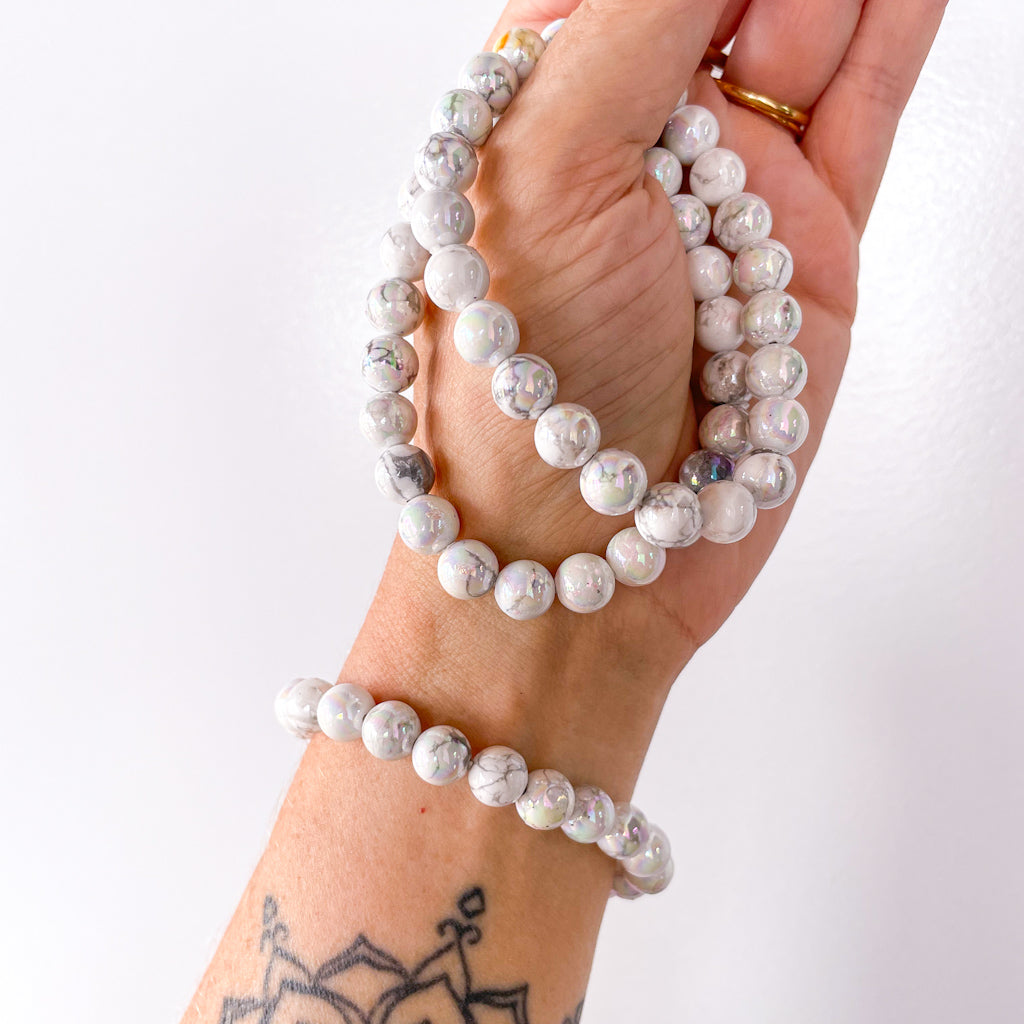 Purchase Angel aura howlite bead crystal bracelet - calm online now from Six things shop Australia.