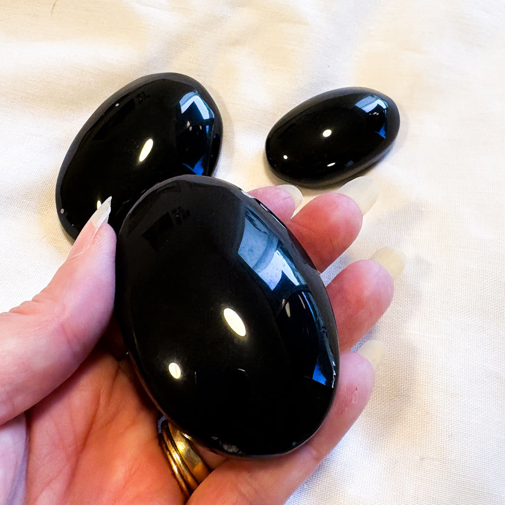 Purchase Black obsidian crystal palm stone online now from Six things shop Australia.