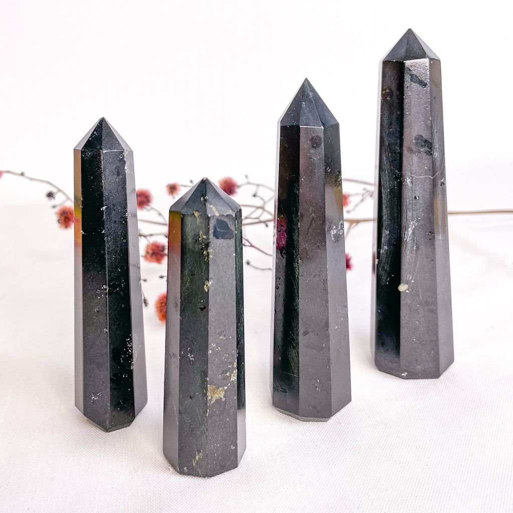 Use these crystal obelisk towers as decoration on your desk or side table, to hold in your meditation practice, or for crystal healing.