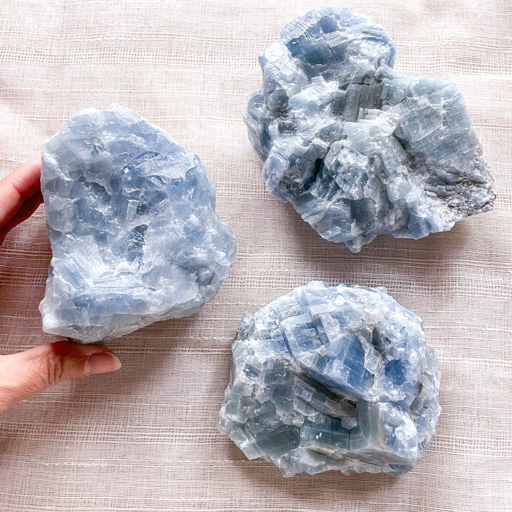 Purchase Large blue calcite crystal rough stone online now from Six things shop Australia.