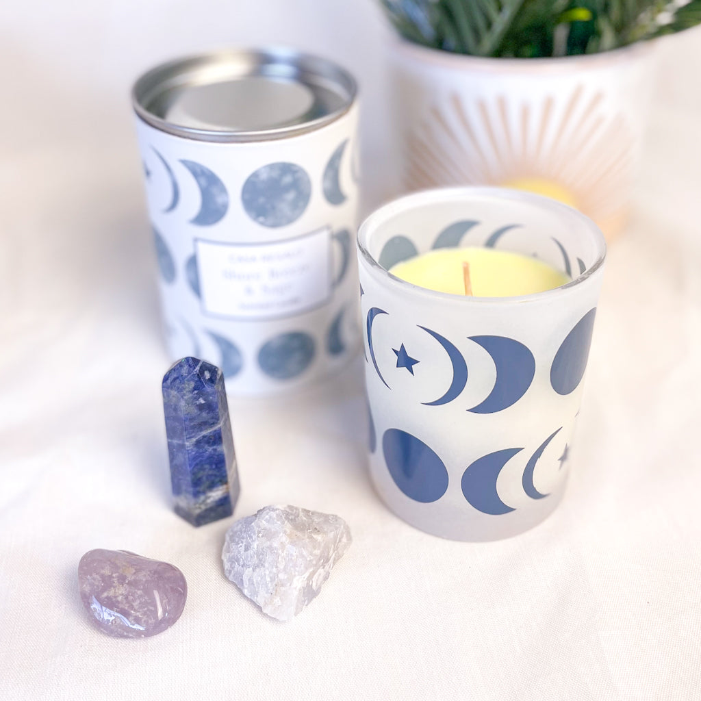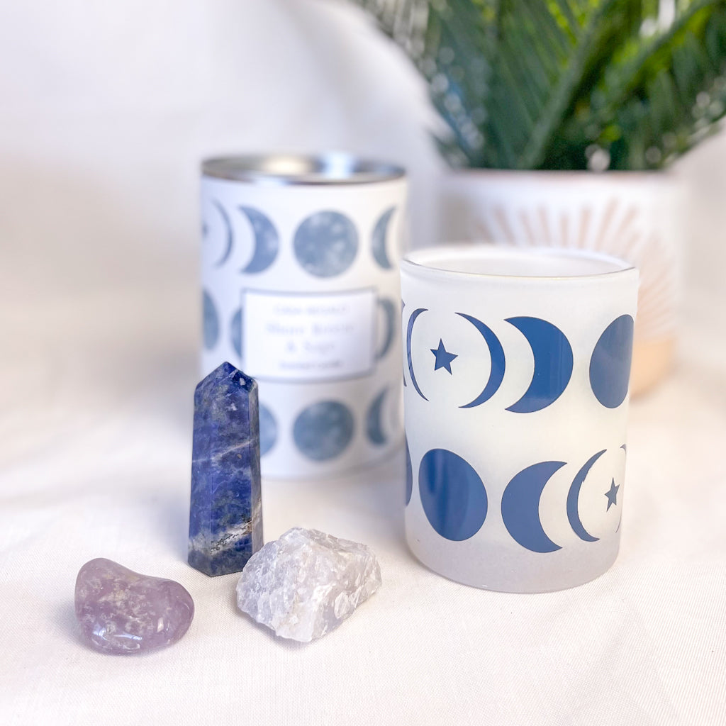 Purchase Blue luna moon phases glass scented candle online now from Six things shop Australia.