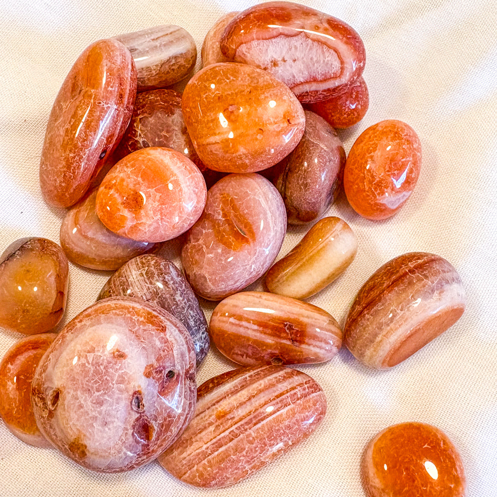 As the stunning red and oranges seem to blend and swirl together, each piece of Carnelian is not only stunning but entirely unique.