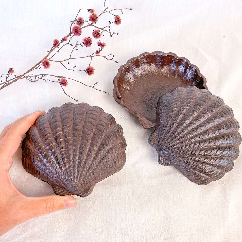 Purchase Cast iron clam shell box / trinket dish with lid online now from Six things shop Australia.