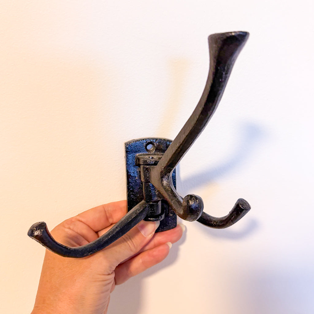 This beautiful cast iron vintage antique-style victorian coat or hat rack is the perfect item for your hallway or mud room. This vintage wall rack has 3 arm hooks that swivel, to hang your coats, scarves, necklaces, keys, hats, bags, or whatever! Makes a great new home gift for friends and family, or for yourself to add some victorian style to your home or office.