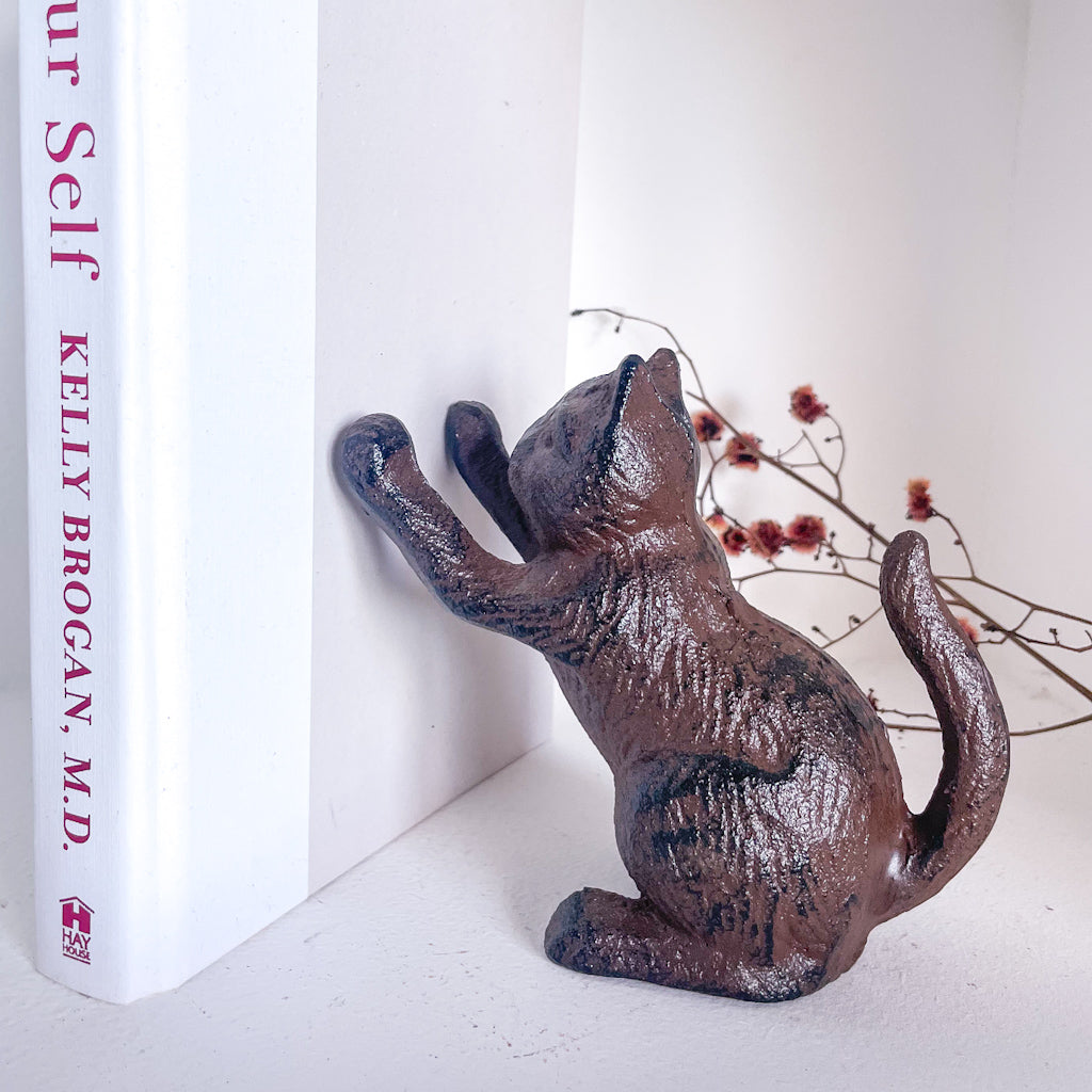 Add a lil vintage style to your home with this fun cast iron cat bookend / door stop.