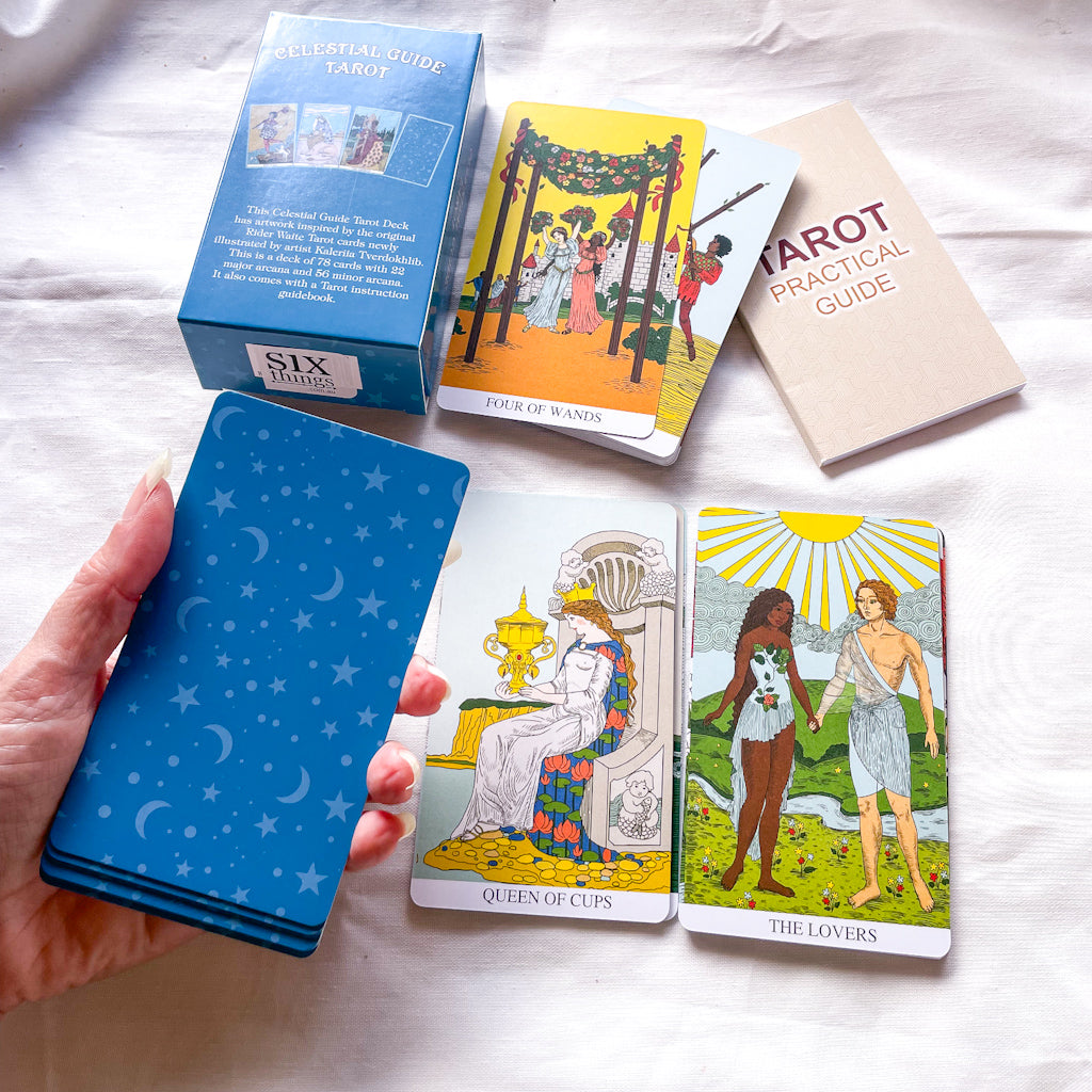 Purchase Celestial tarot reading card set with guide online now from Six things shop Australia.