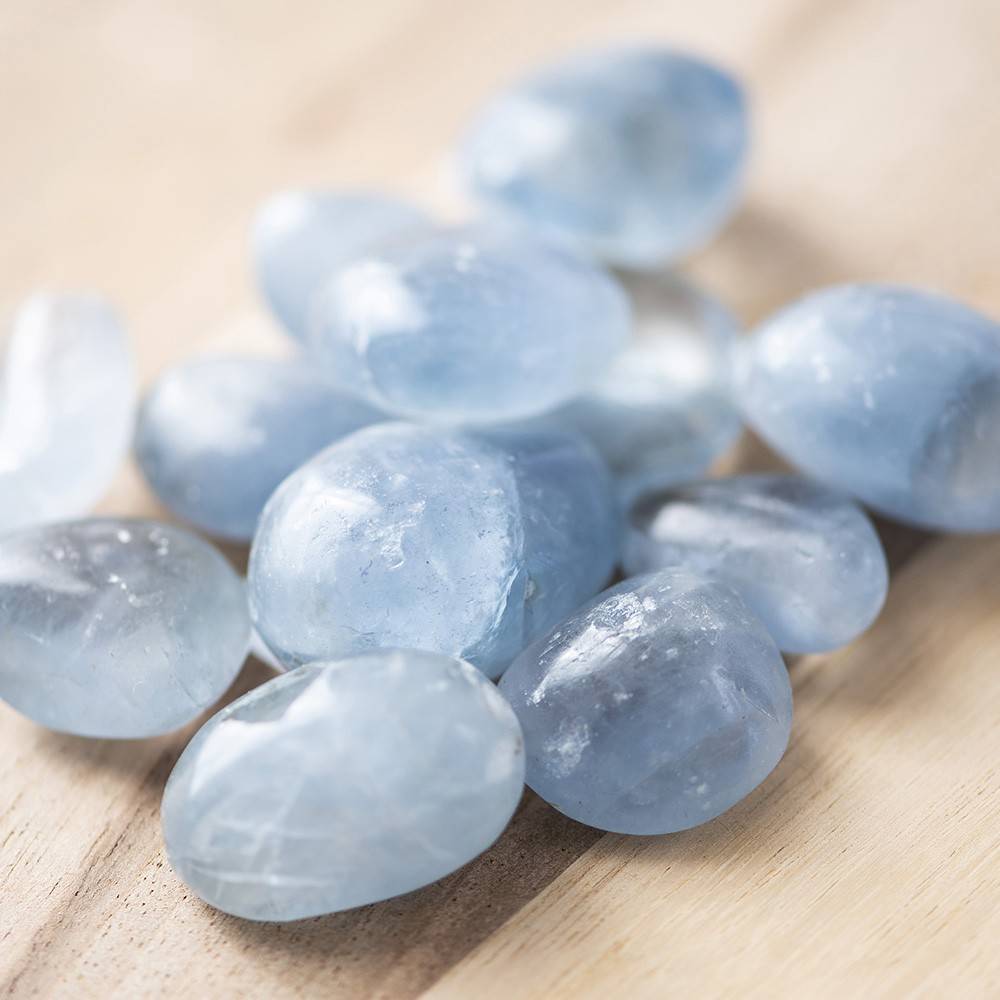 Purchase Celestite / celestine crystal tumble stone online now from Six things shop Australia.