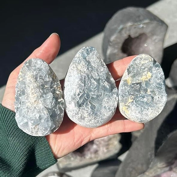 Purchase Celestite crystal cluster egg online now from Six things shop Australia.