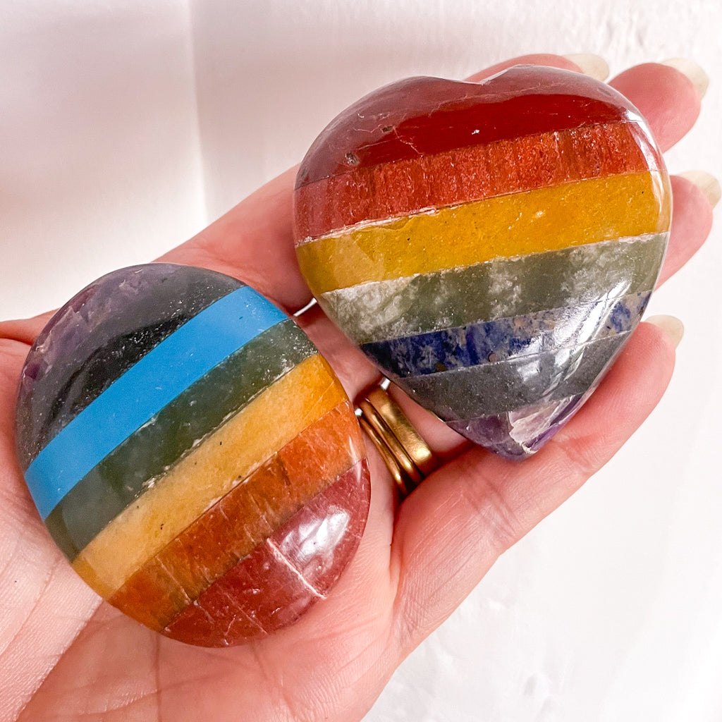 7 chakra palm stones / heart are used to balance the Chakras and enhance Chakra healing. Place them on the energy centre or hold them whilst meditating and you can carry them with you during the day.