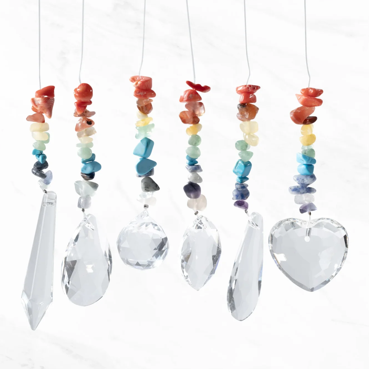 Elevate your space with our Hanging Crystal Chakra Sun Catcher, designed to harmonize and energize through the vibrant power of chakra colours and the principles of Feng Shui. Crafted in six captivating designs, including Heart and Ellipse, it embodies balance and positivity. Perfect for indoor and outdoor use, it sparkles beautifully in sunlight, casting mesmerizing reflections and a radiant rainbow spectrum. More than just décor, this piece aligns with the chakras to infuse your surroundings with uplifting energy, tranquility, and a touch of brilliance for all who love sparkle.
