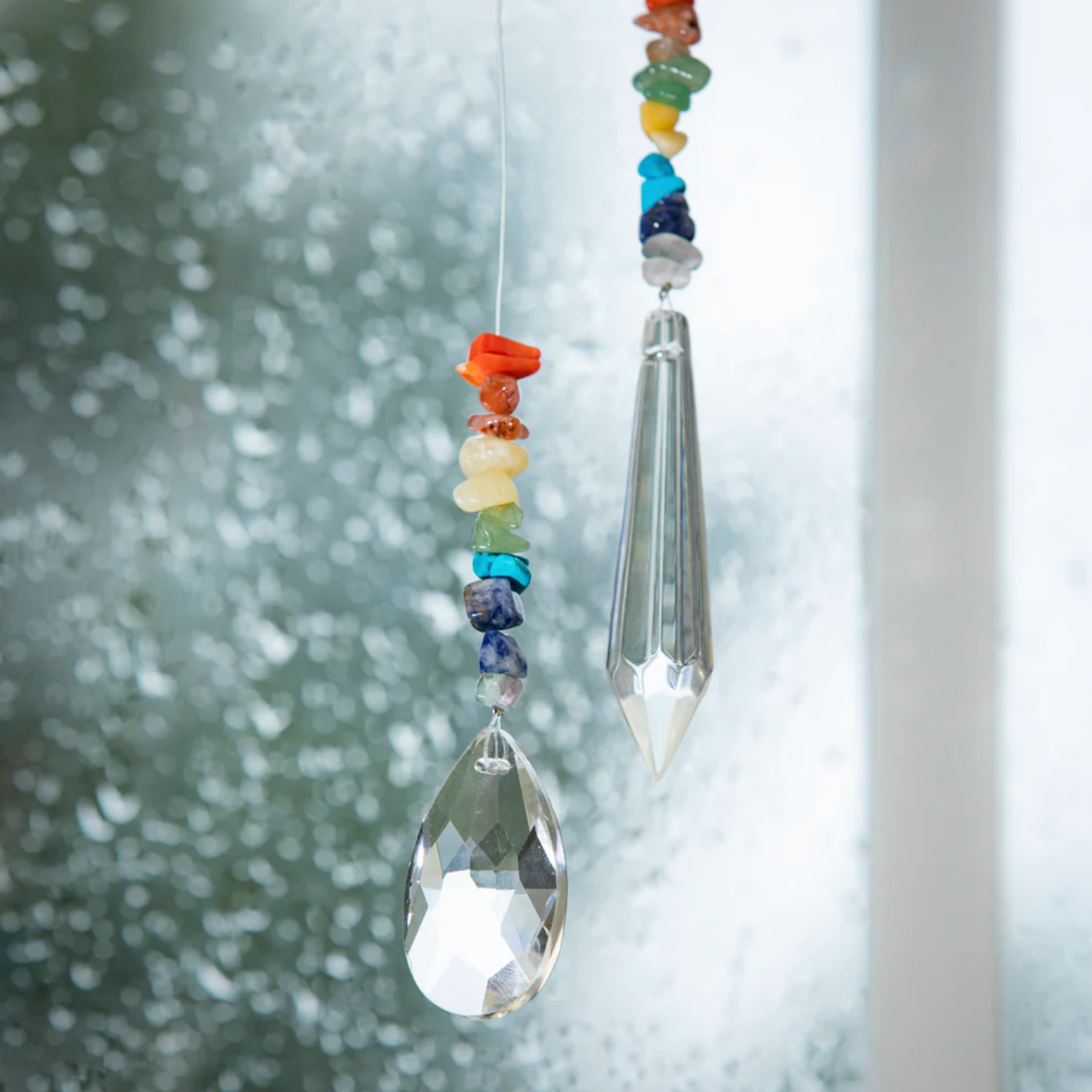 Hang this chakra suncatcher in your garden, in your bedroom or bathroom window and watch the rainbows dance around your room.