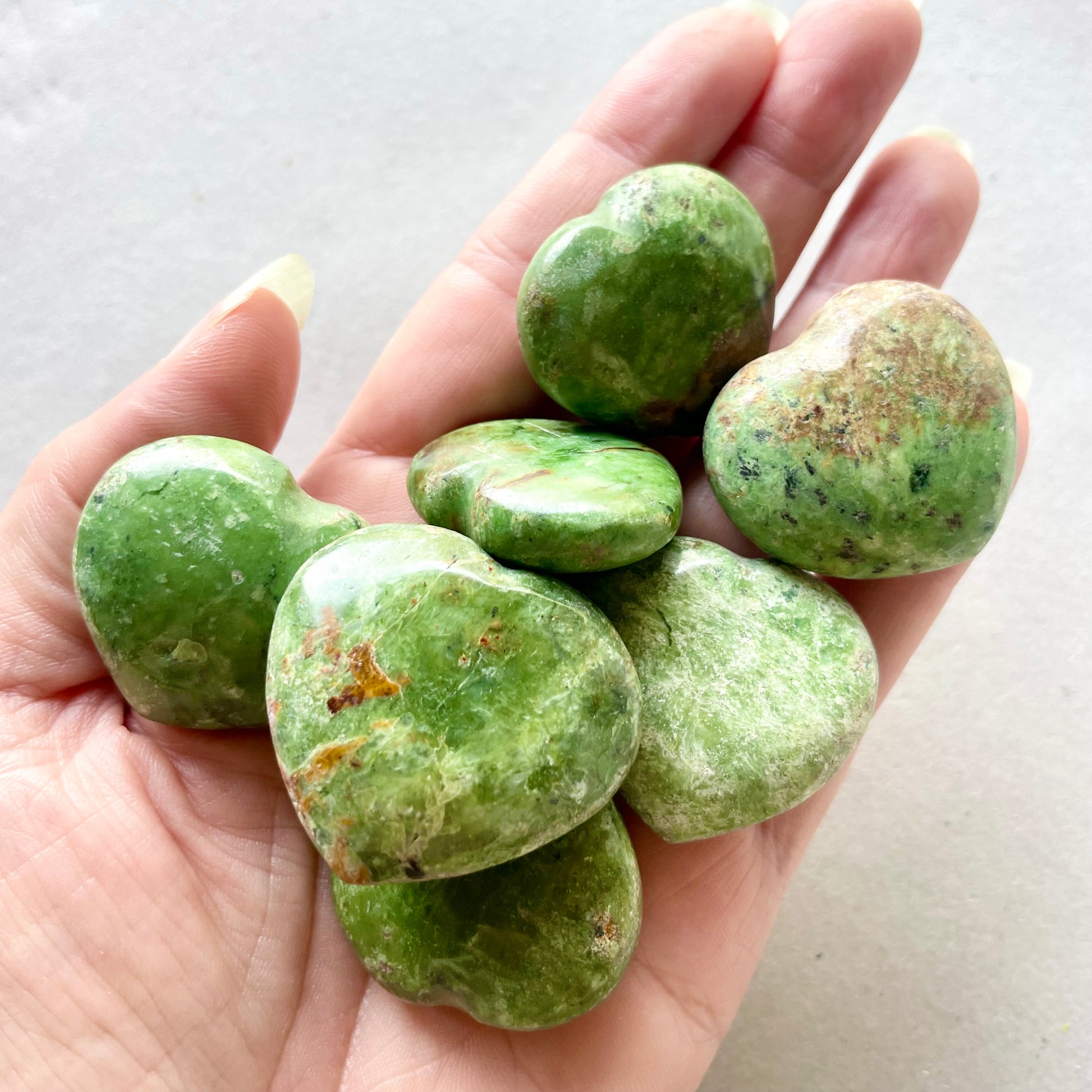 Purchase Chrysoprase crystal polished heart stone online now from Six things shop Australia.