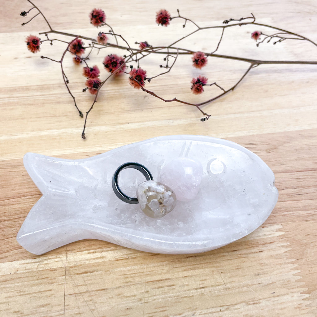 This gorgeous fish shaped ring dish / crystal bowl will melt your heart and cleanse your area - perfect for on the bathroom bench or by the bedside.
