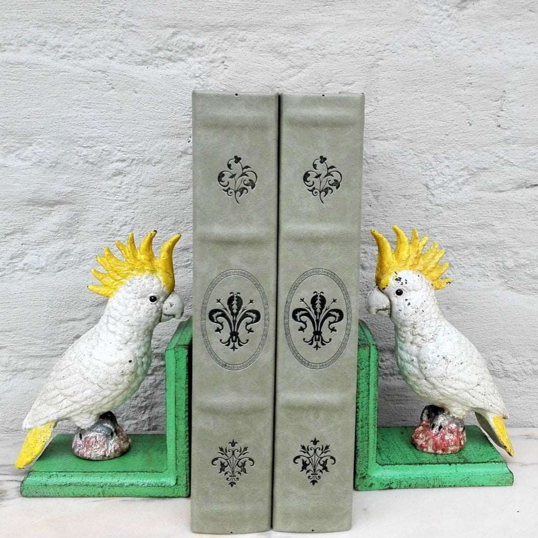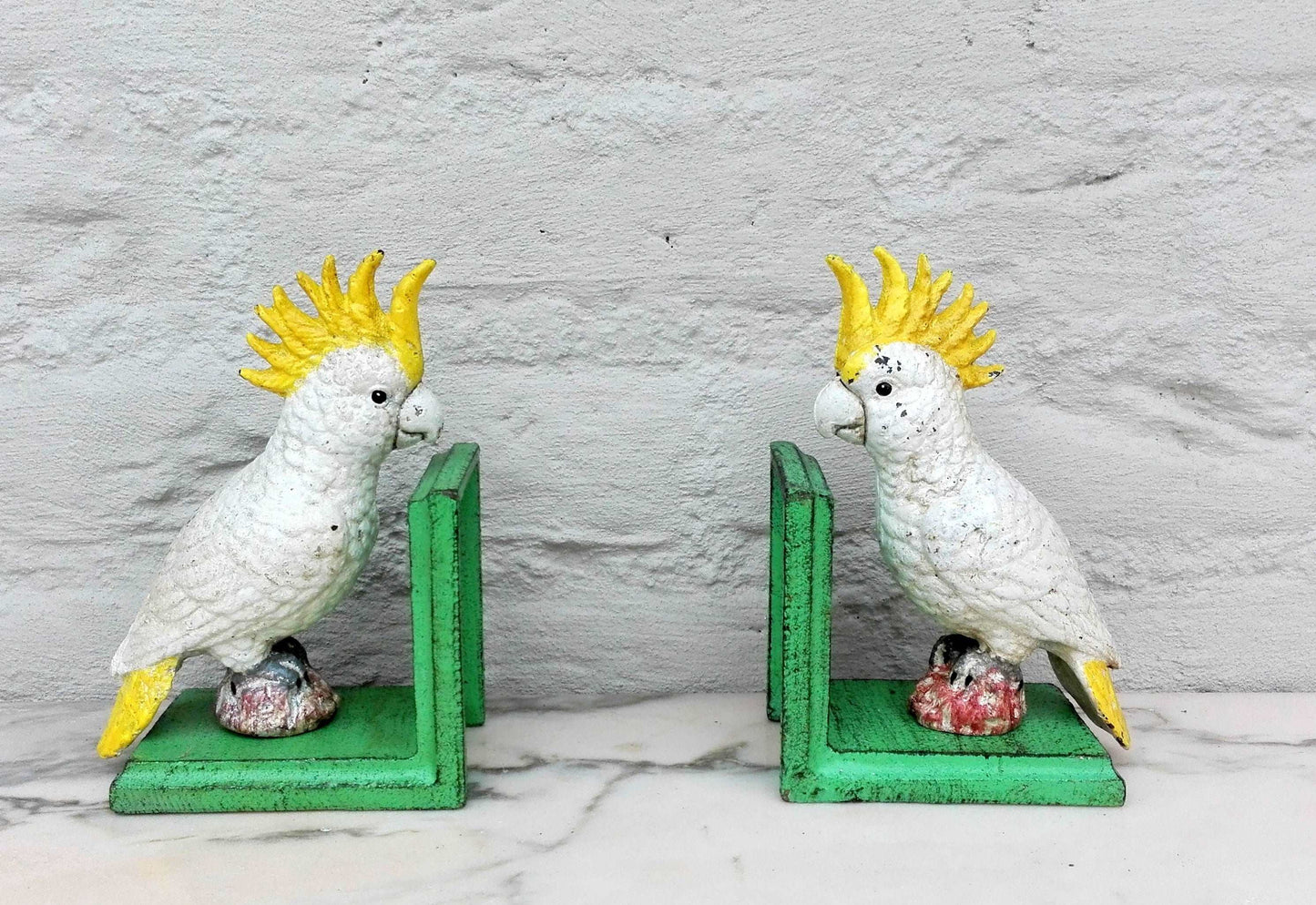 Purchase Cockatoo vintage statue painted metal bookend - single or pair online now from Six things shop Australia.