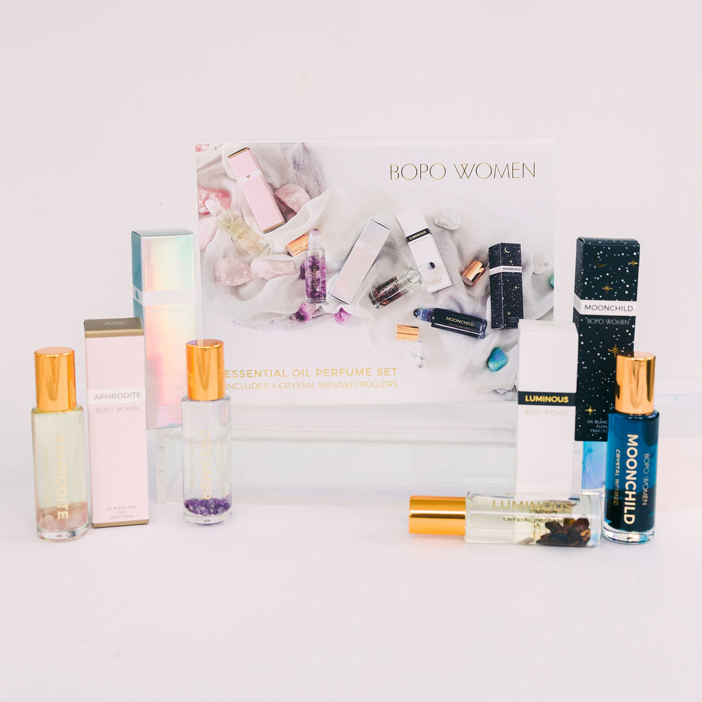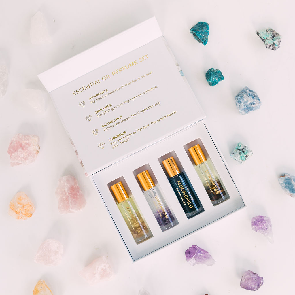 Purchase Crystal infused essential oil perfume roller online now from Six things shop Australia.