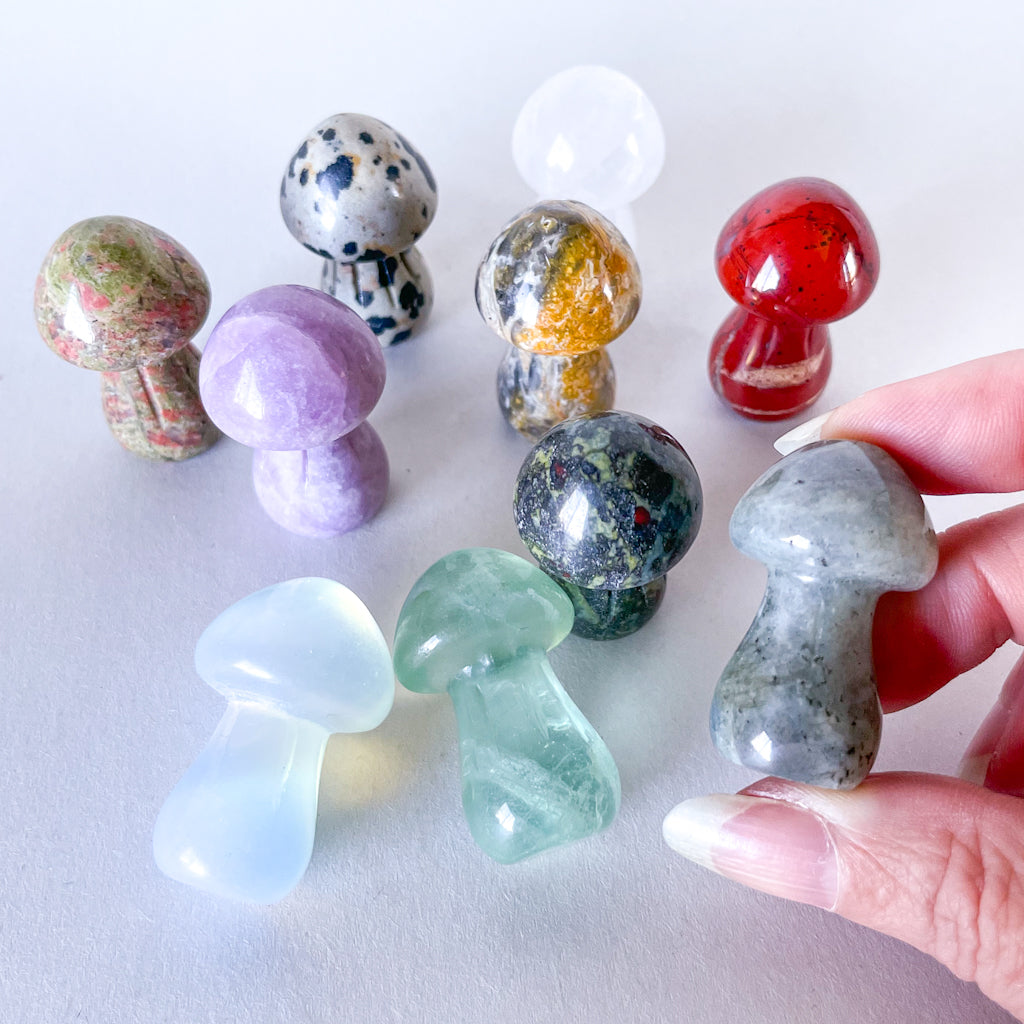 These little mushroom crystals are the perfect size to pop on a window sill, on your bedside, in your purse or pocket.