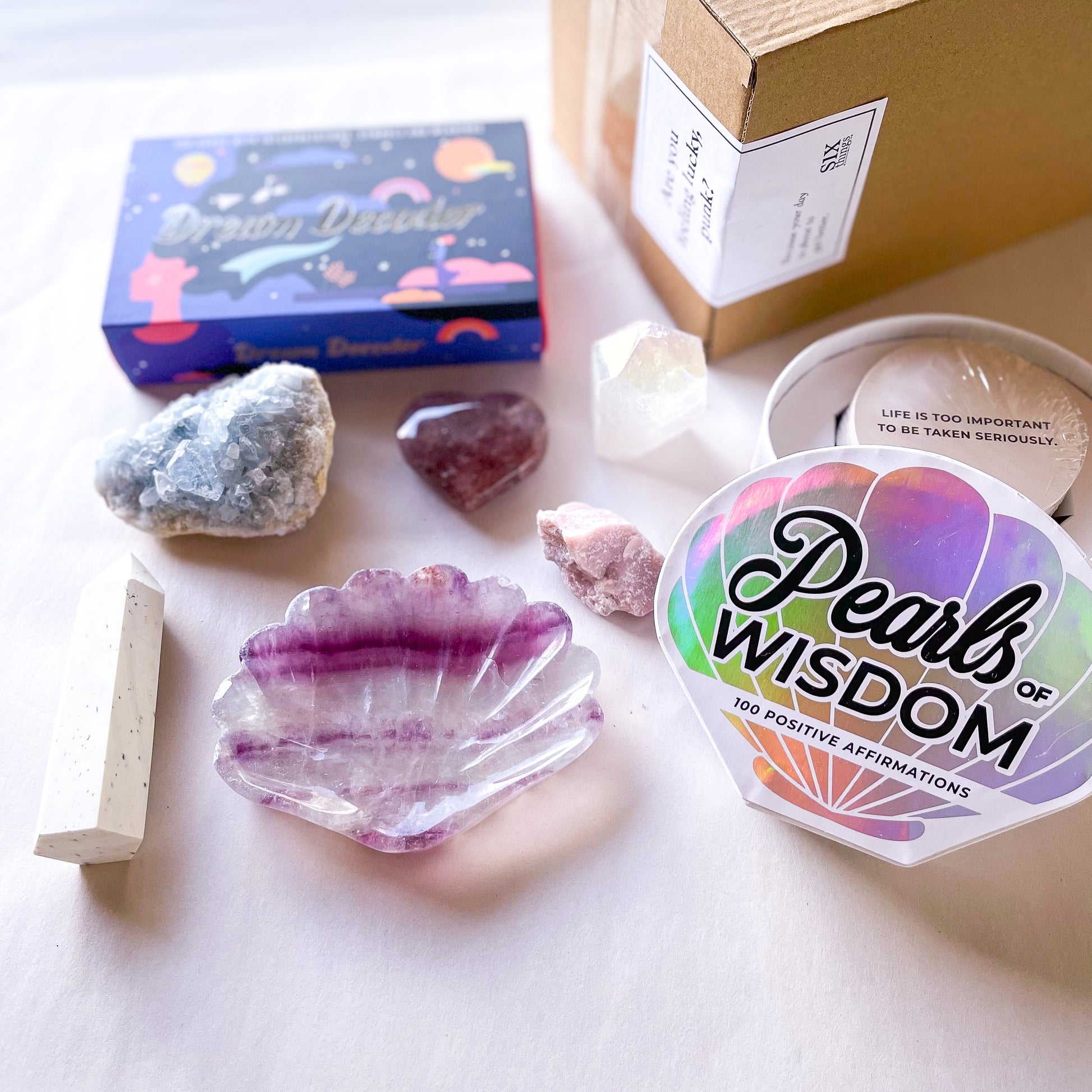 Purchase SUBSCRIPTION MYSTERY BOX - Good vibes & crystals gift box online now from Six things shop Australia.