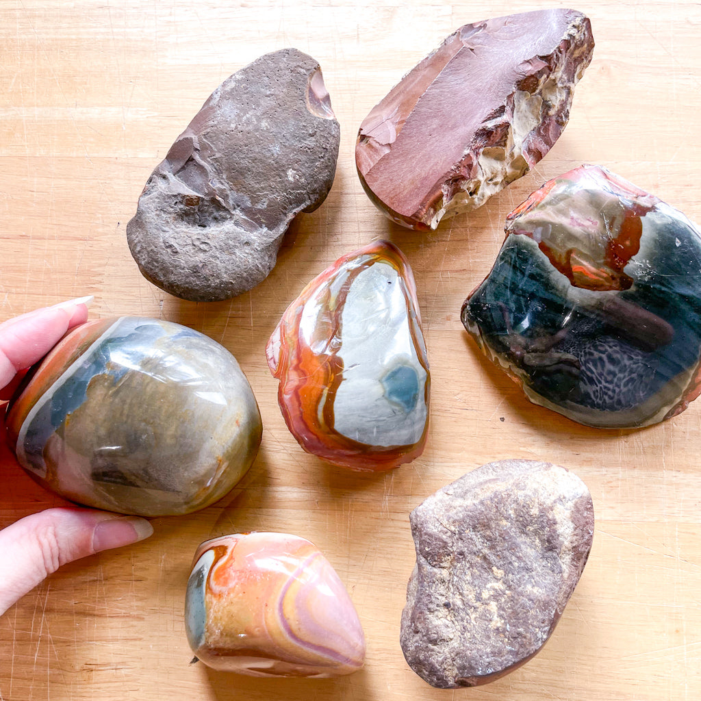 Polychrome jasper / desert jasper is known to embody one's true self, has strong grounding, centering, and stabilizing energies, and evokes passion, fire and creativity. Polychrome Jasper, also known as Desert Jasper, is a variety of Jasper recently discovered in Madagascar. In 2008 while exploring for ocean jasper the first deposit of Polychrome was accidentally discovered.