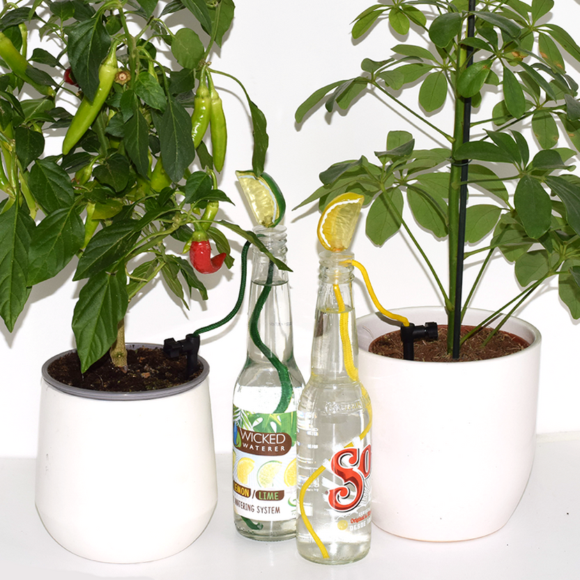 Yo serial plant killer, it's time to love your plants! Just add a bottle (empty your fave beer or cooler bottle and use that) to create an indoor plant watering system. Wicking cords and fruity bottle topper included along with adjustable flow taps for the pots. Never let your plants dry out again!