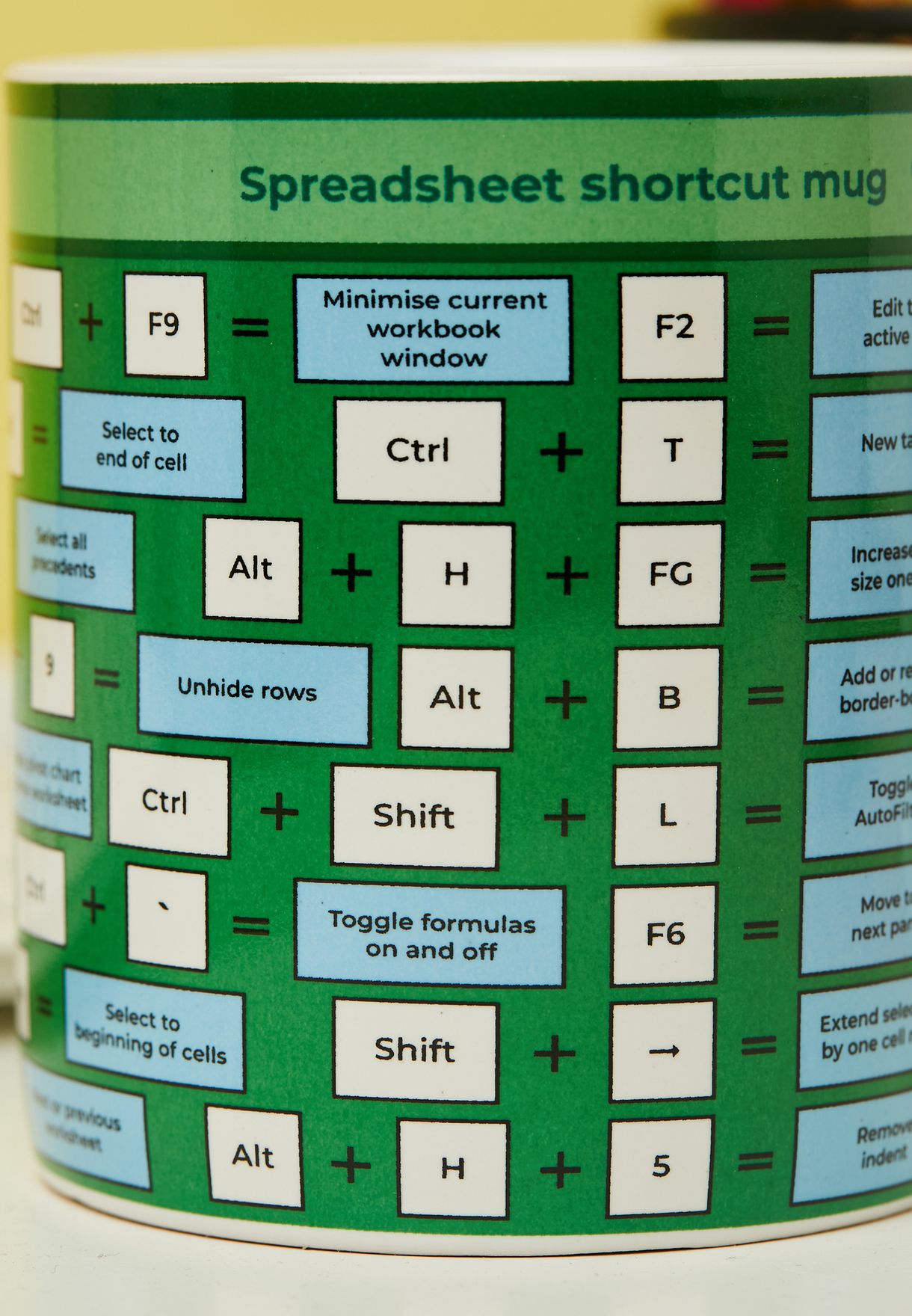 Do you know someone who just loves excel spreadsheets? This mug makes the perfect gift, showing some ingenious shortcuts cheats they would truly appreciate.