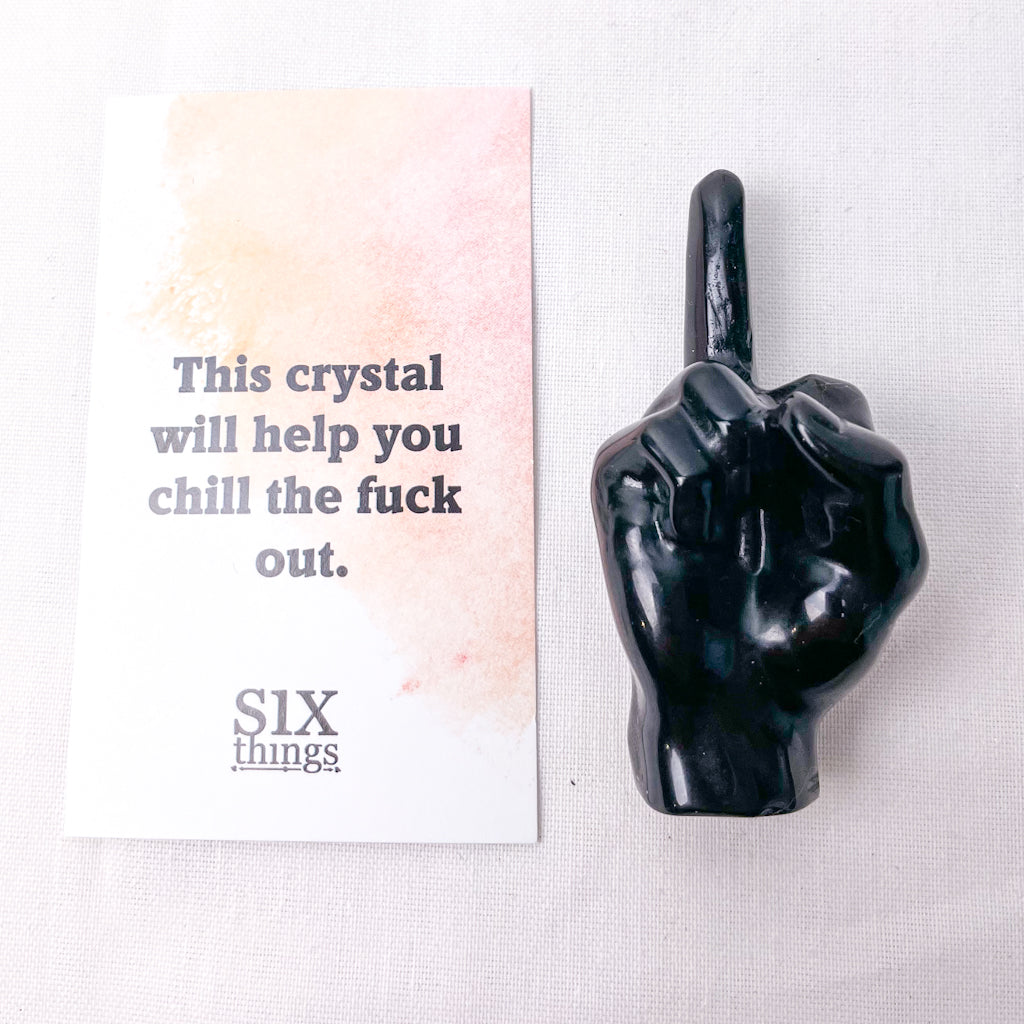 Purchase F OFF Crystal / rude finger obsidian crystal to help you chill the fuck out online now from Six things shop Australia.