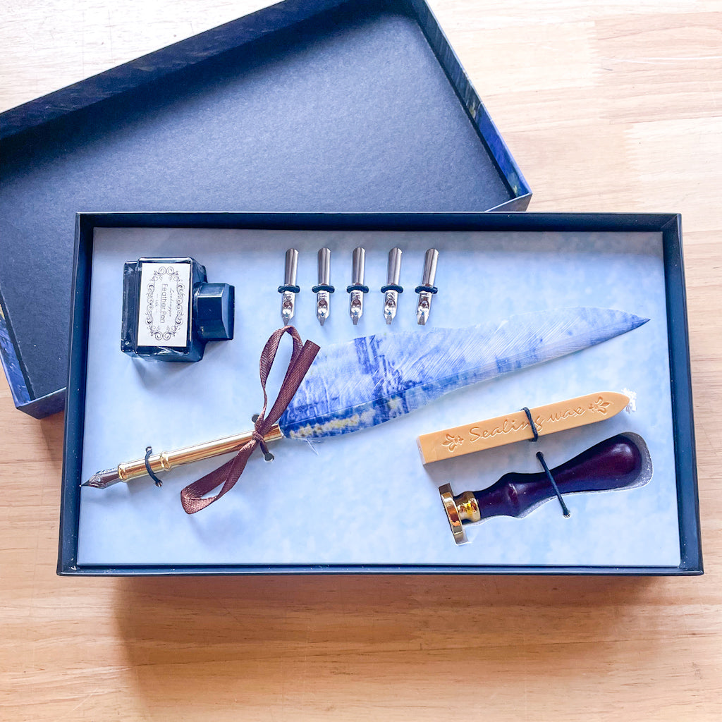 Purchase Feather calligraphy pen & wax seal gift set online now from Six things shop Australia.