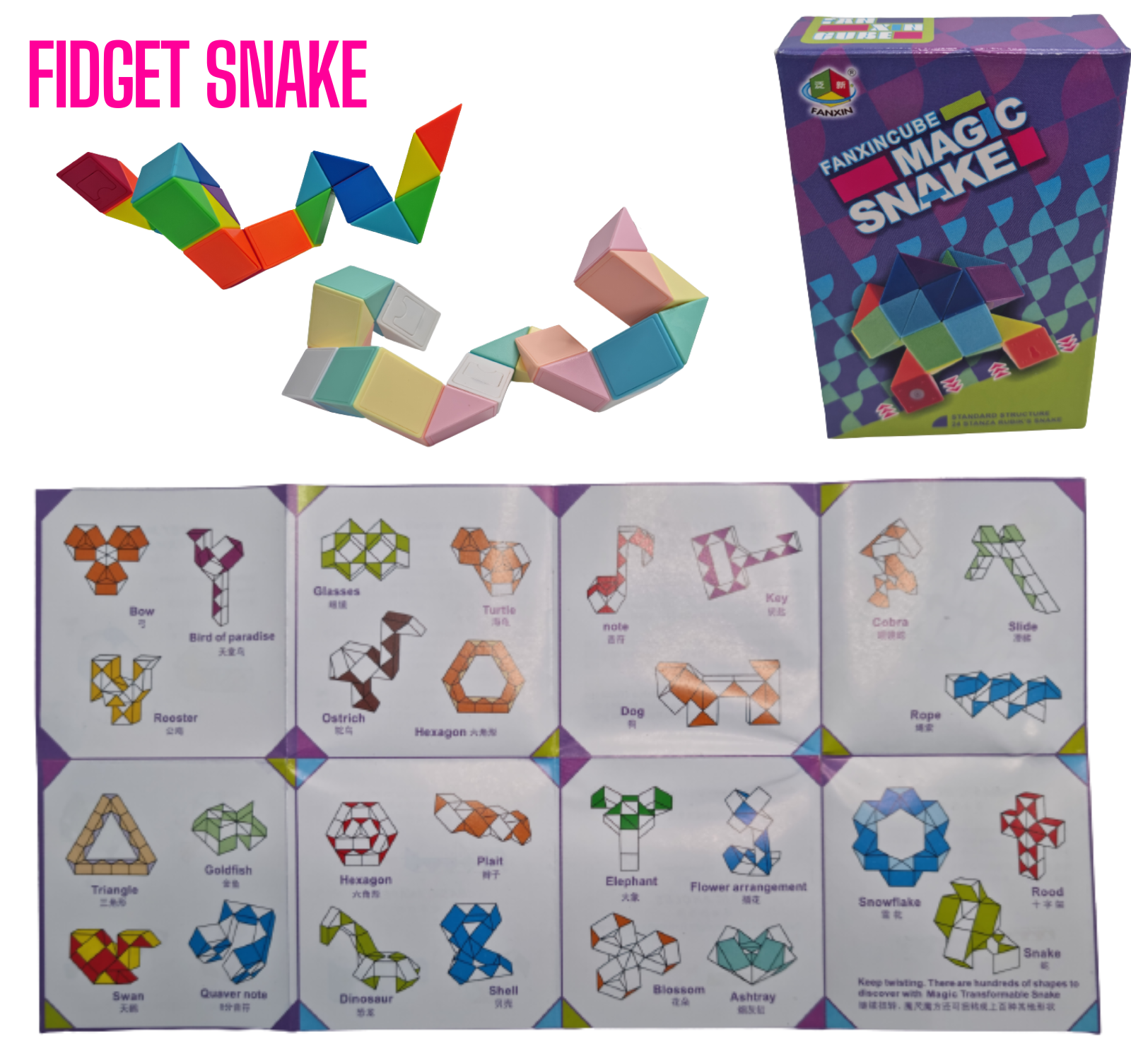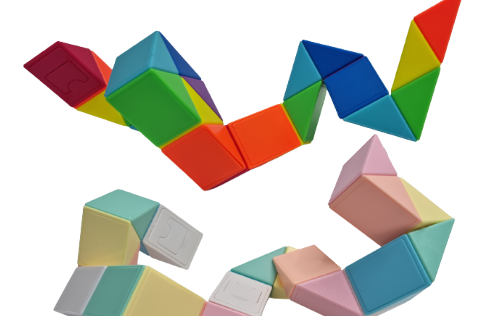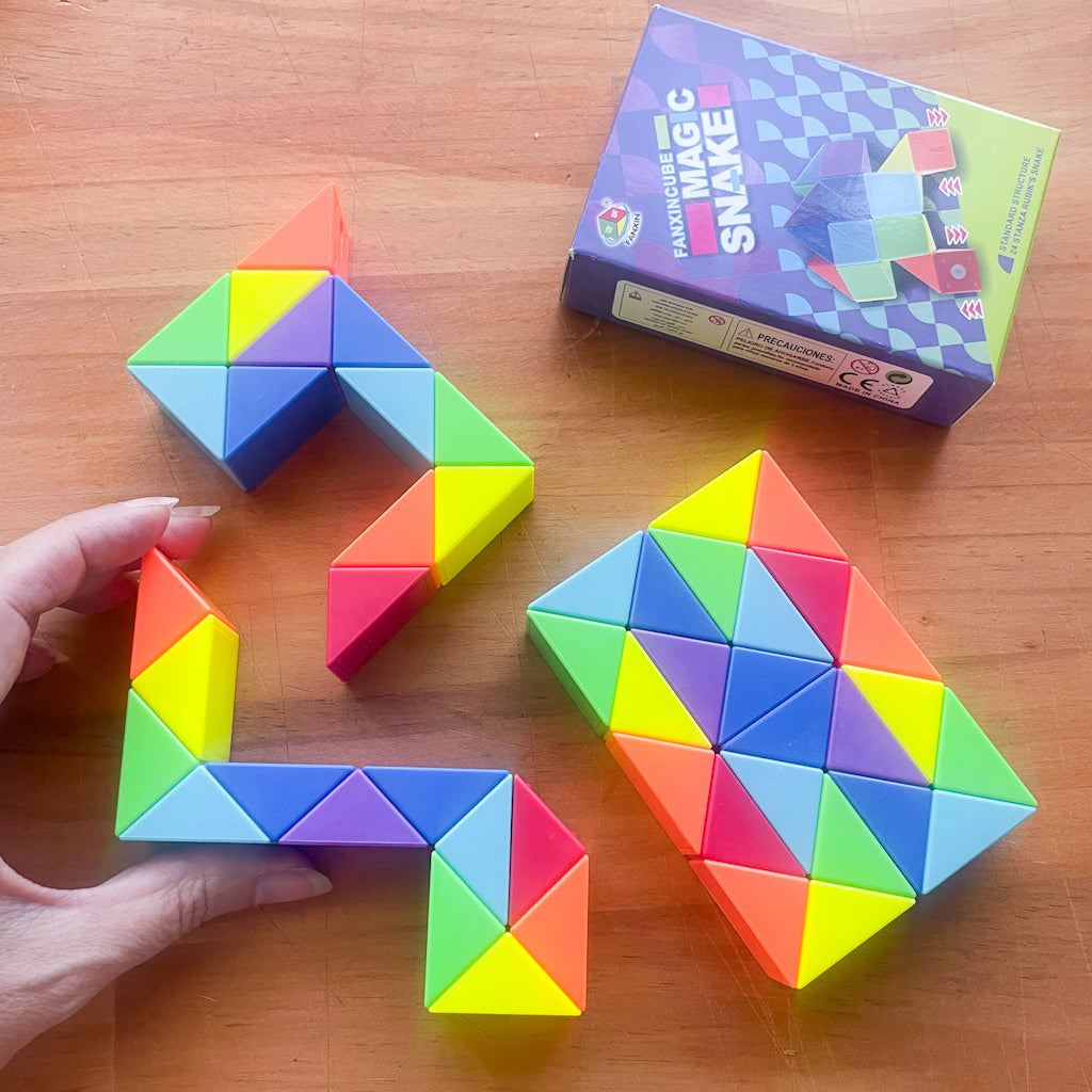 Show off your creative capabilities with this Snake Puzzle! Make thousands of different objects by twisting the triangular bricks into different positions and combinations.