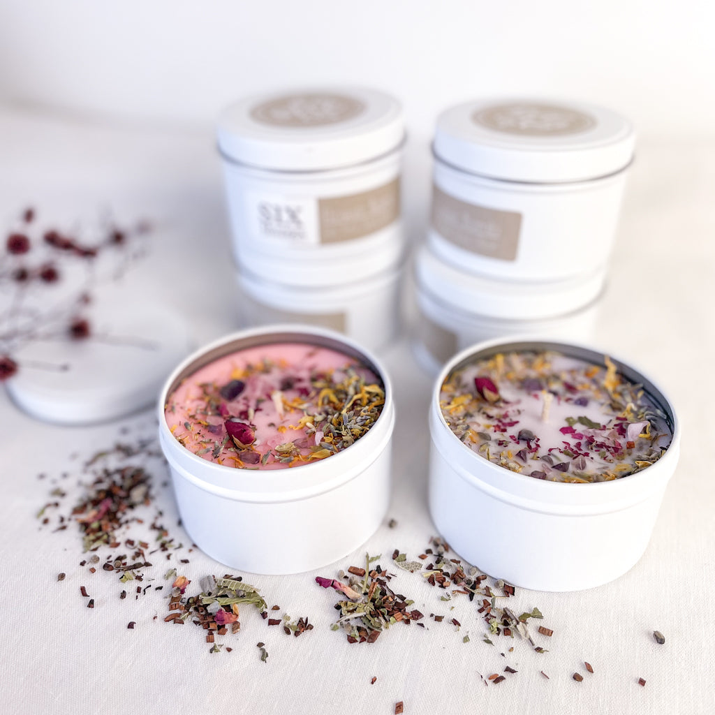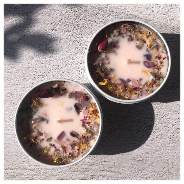 Purchase Flower, rose quartz & amethyst crystal infused soy candle online now from Six things shop Australia.