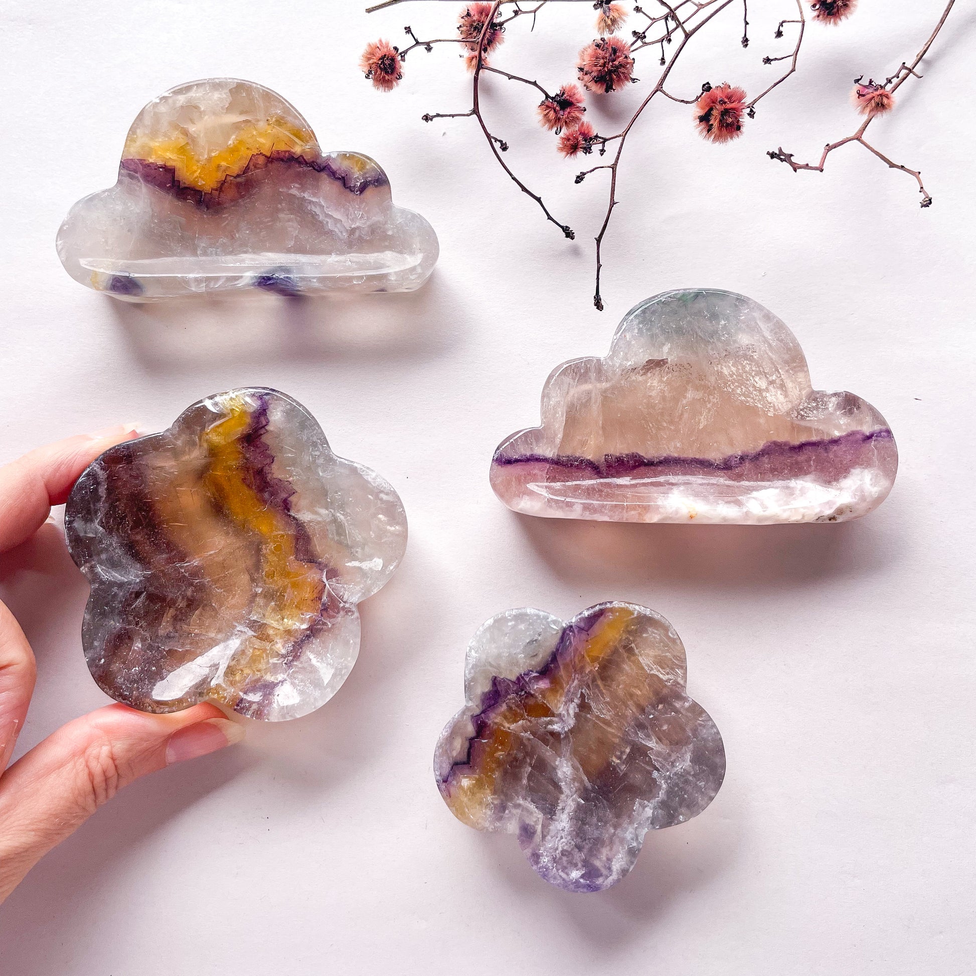 Fluorite crystal polished cloud bowl / flower trinket tray