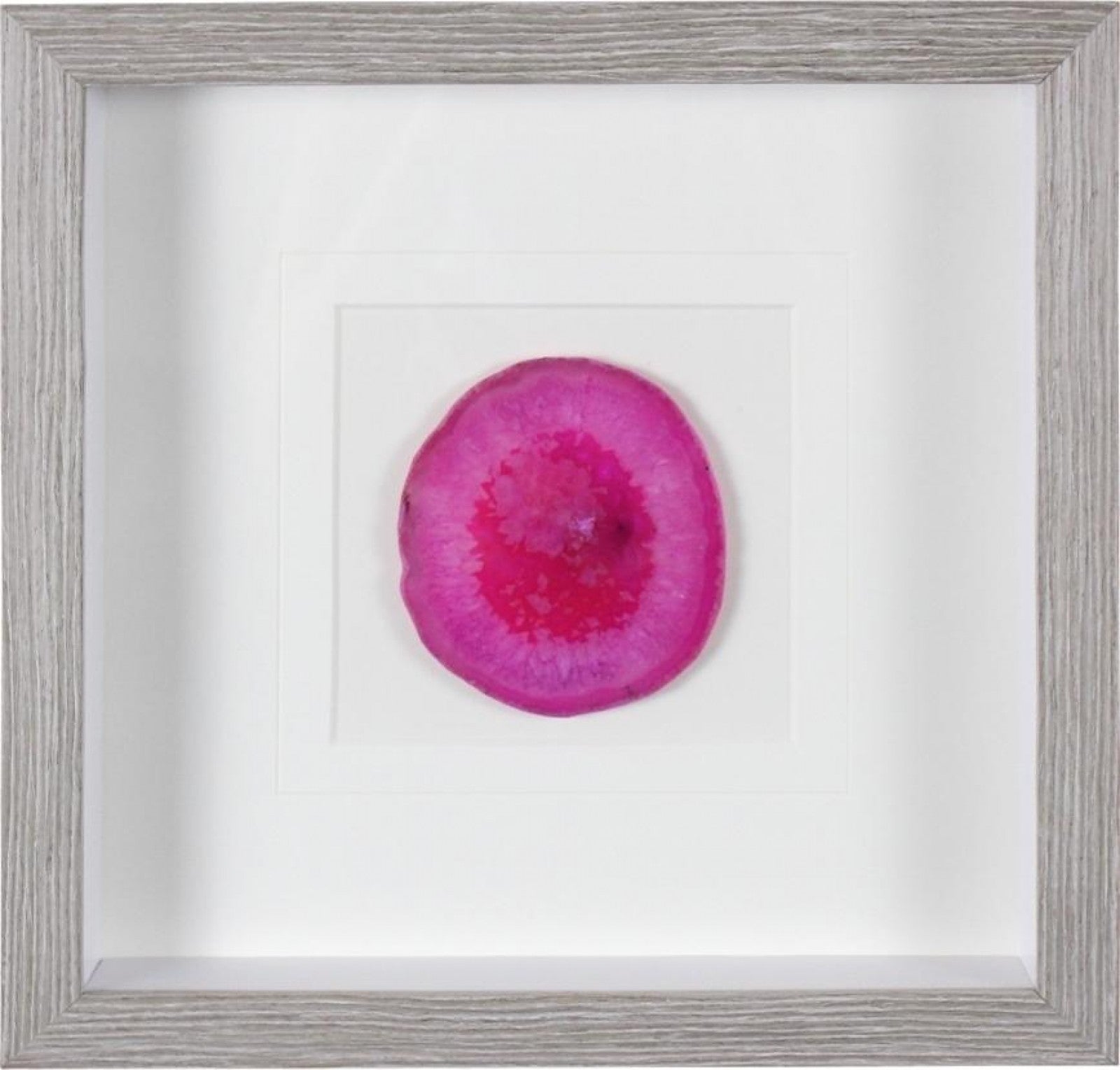 Coloured agate has been used at the centre of a framed artwork whose stark white backdrop focuses attention on this beauty. Made to add that pop of colour, this is a superb means to help make a wall space feel special in a unique kind of way.