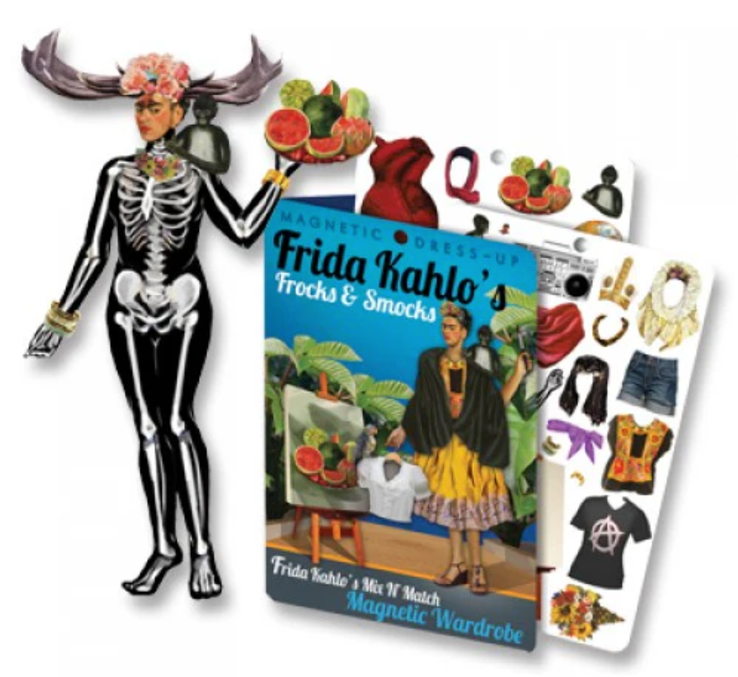 We like to think Frida would get a kick out of this What Would Frida Wear Magnetic Dress Up Kit. It features a large magnet in the likeness of Frida and a large assortment of magnetic clothing and accessories.