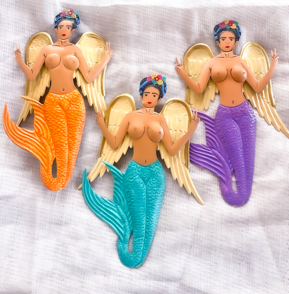 Frida mermaid hand painted metal wall hanging