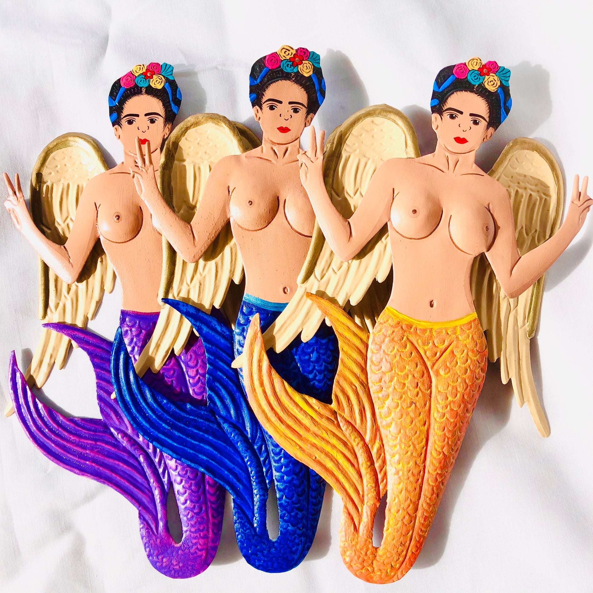 Individually hand-made Frida Mermaid wall hanging decoration made from cut metal and hand-painted to celebrate this Mexican Diva!