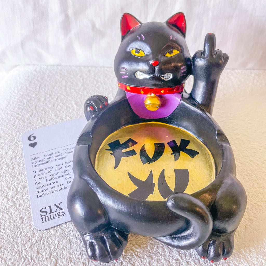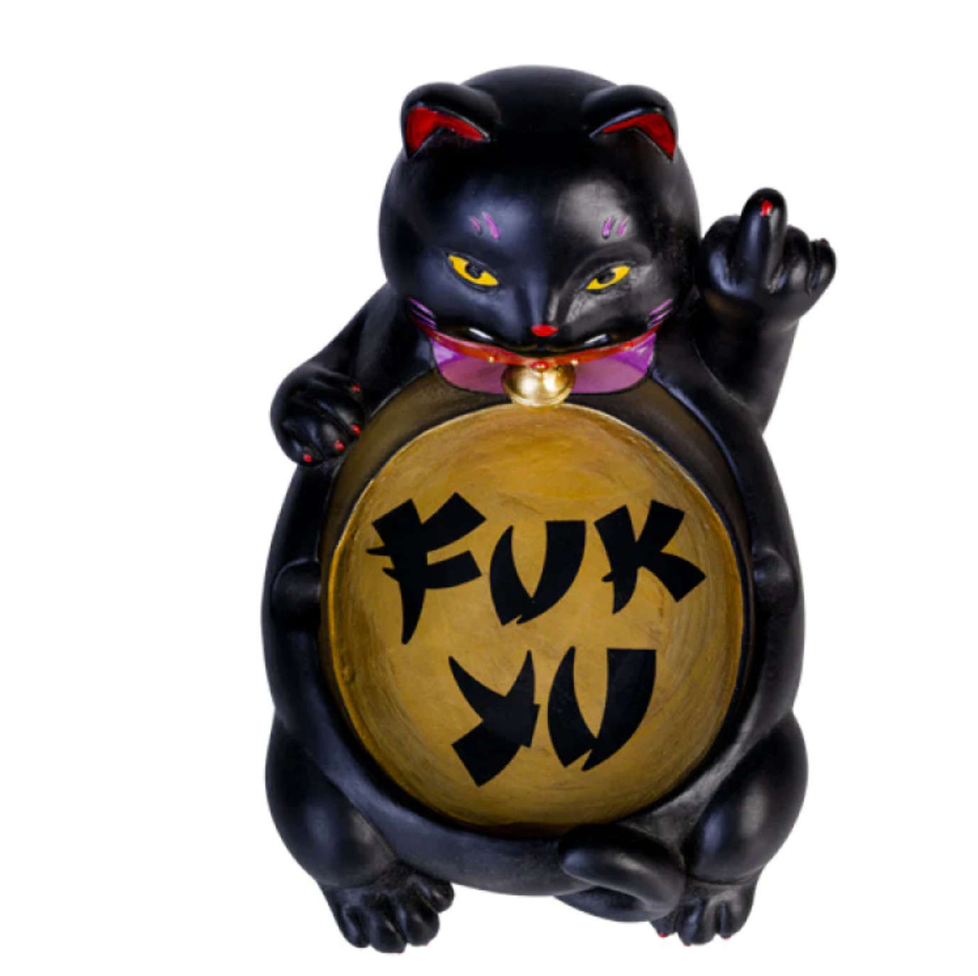 Shaped like a cheeky, black lucky kitty pulling the finger. Features a gold dish with ‘Fuk Yu’ lettering. This tray makes a unique gift for that bitchy cat lady or a fun novelty homeware for yourself!