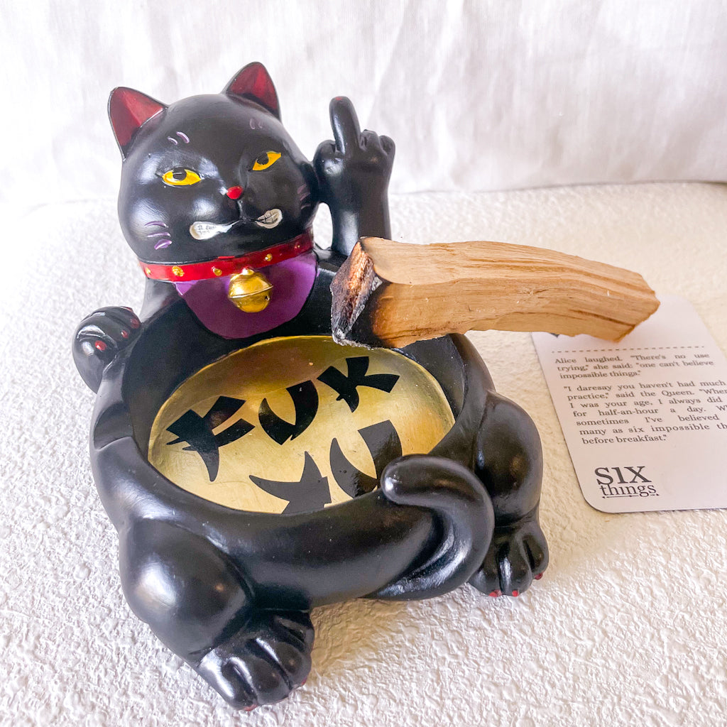 This rude cheeky black cat is flipping you off! Our FU cat ashtray / stash tray is perfect for expressing your mood and style.