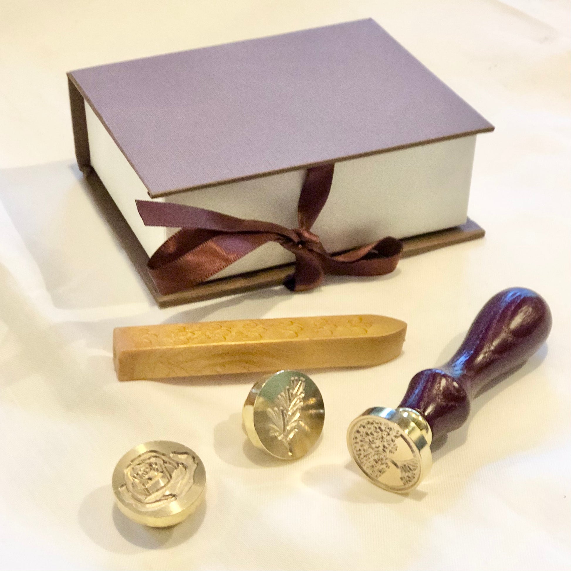 Garden wax seals / wooden brass sealing stamps - boxed set of 3