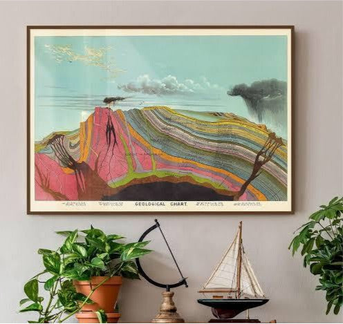 The poster comes with optional oak frame and has a vintage-inspired style that captures the wonder of geology.