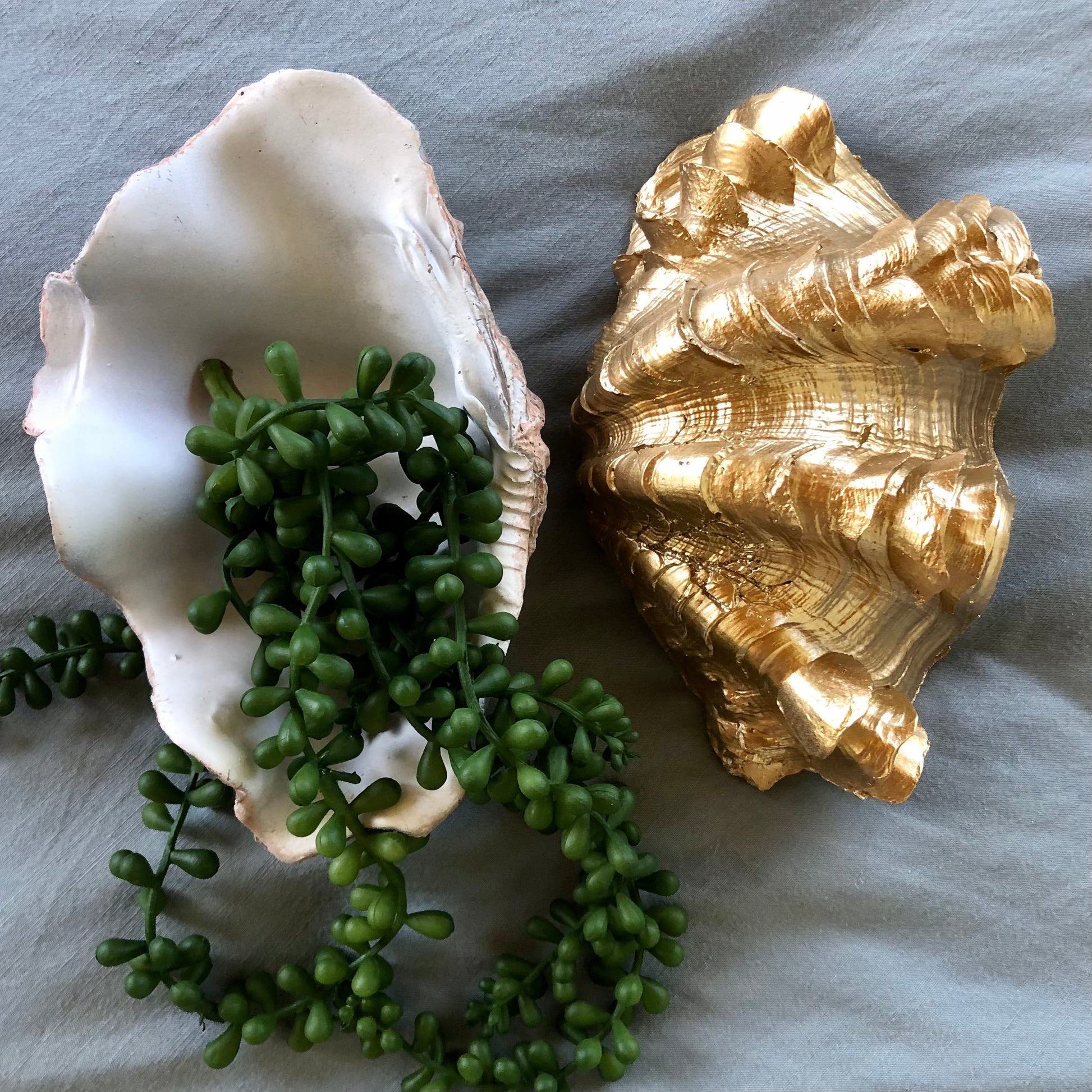 A vintage gold finish on the outside our faux clams  make a stunning centrepiece in any home.