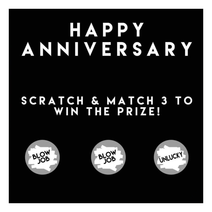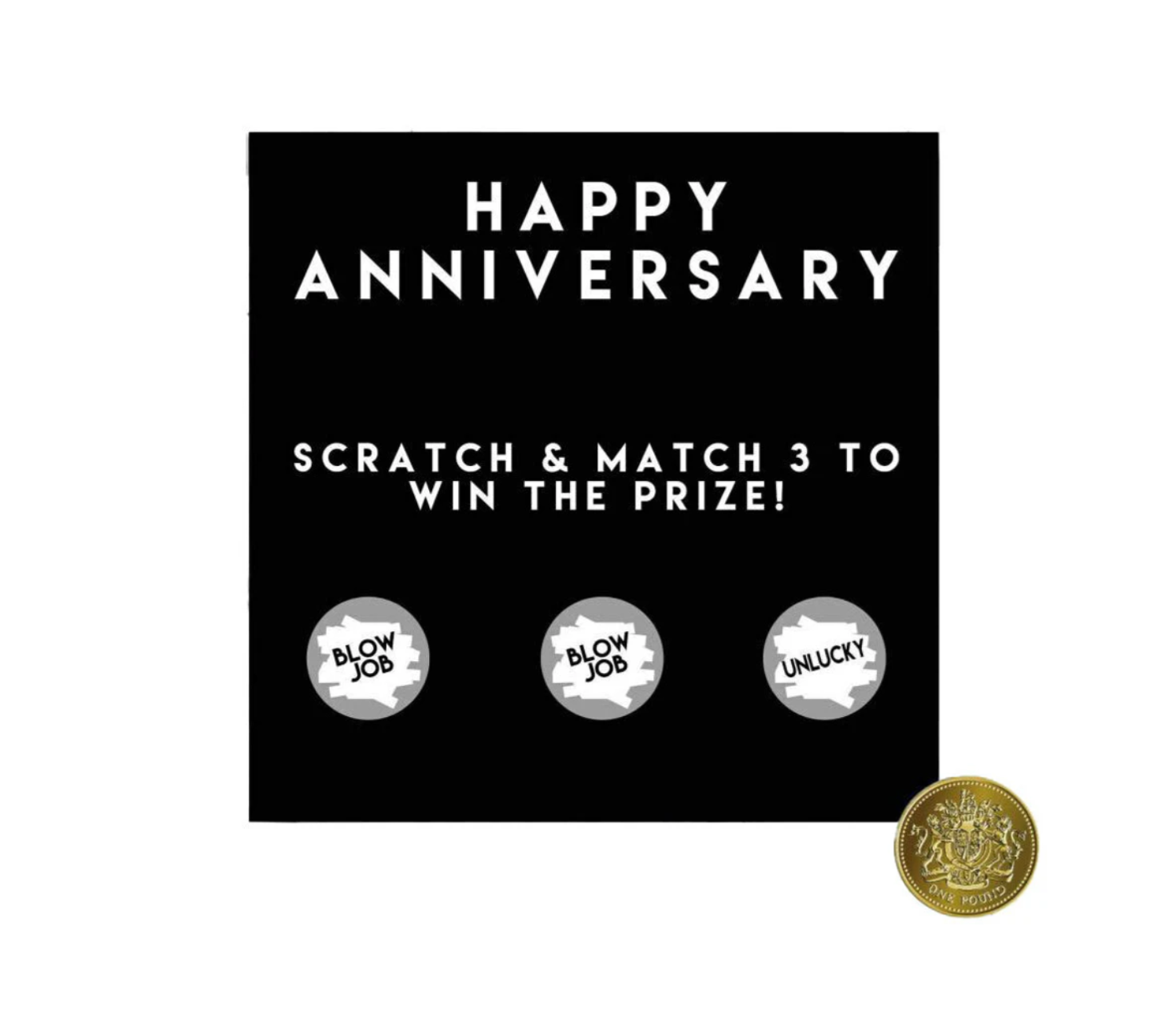 Simply scratch off the silver foil to reveal 3 of a kind and you get a blowjob hunny! Oh no better luck next time hahahaha. Whether you're celebrating 1 year or 25, this anniversary card is the perfect way to show your partner how much they mean to you without having to get on your knees LOL.