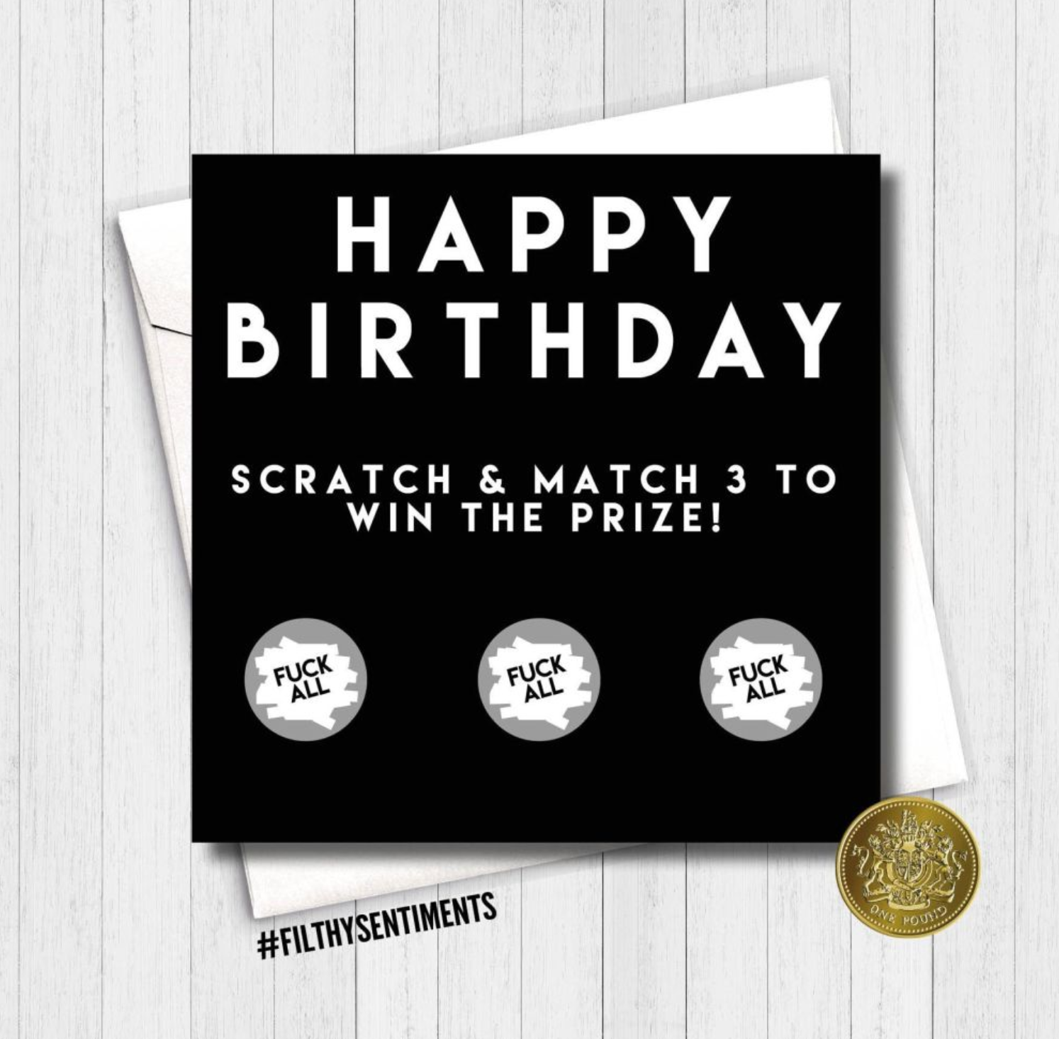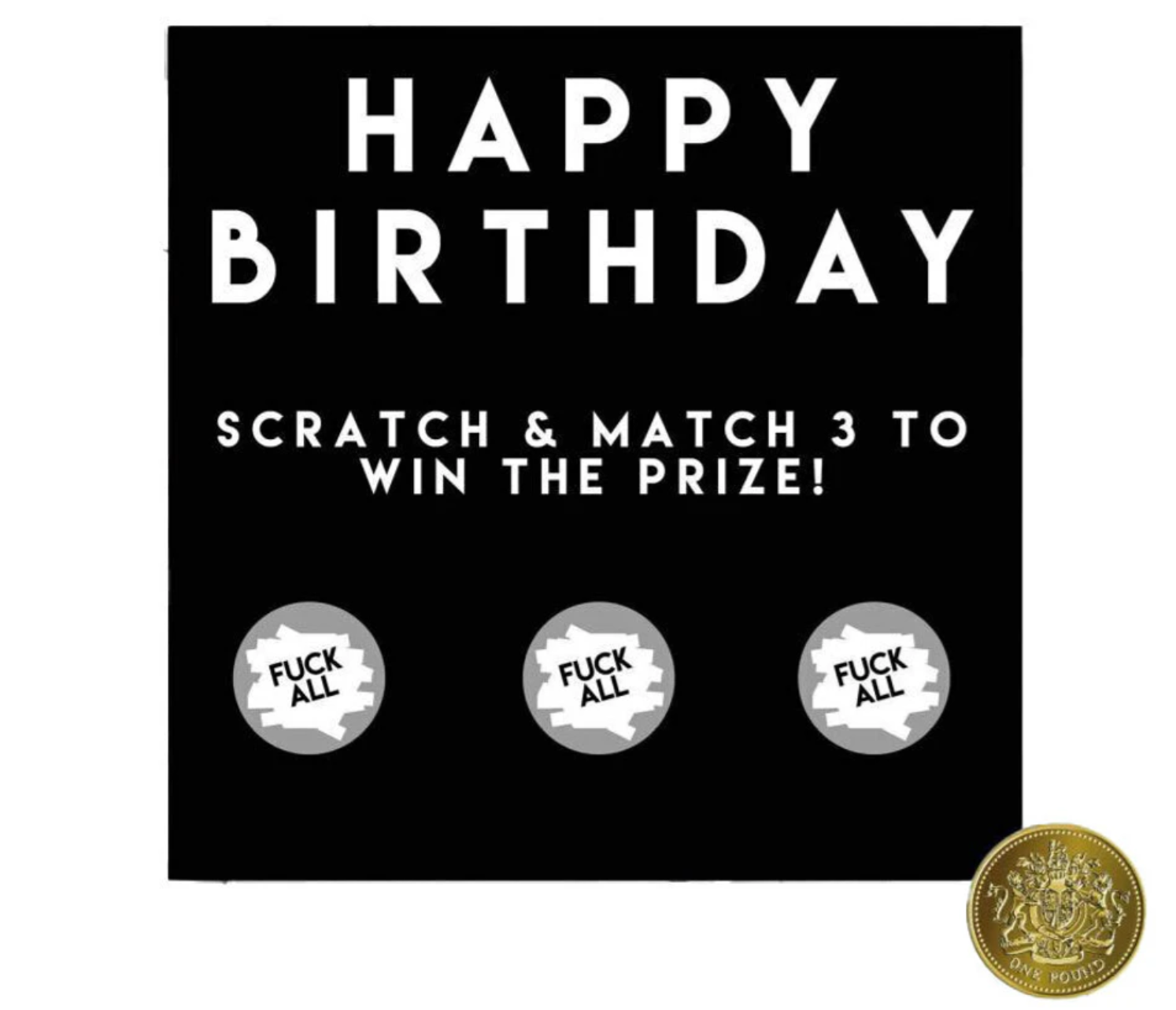 Simply scratch off the silver foil to reveal 3 of a kind and you get ... FUCK ALL! You won all three match hahahaha. This birthday card is the perfect way to show them how much they mean to you without having to get them anything LOL.