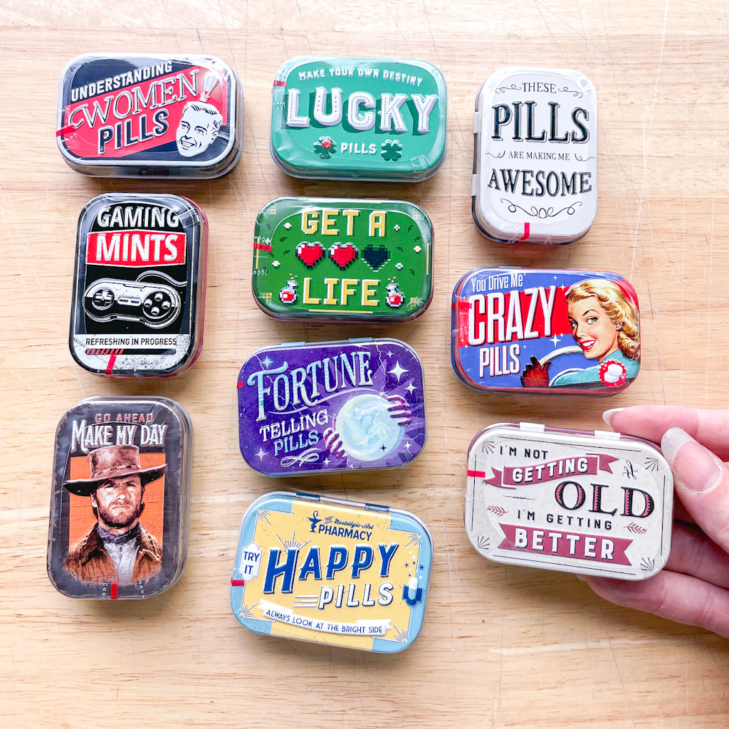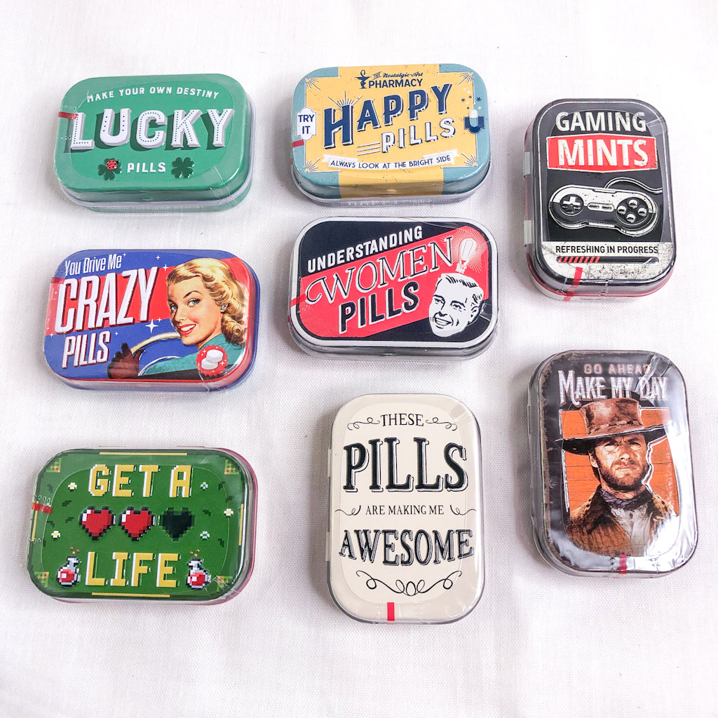 Lucky Happy pills / gamer fun Mints in a novelty metal trinket tin