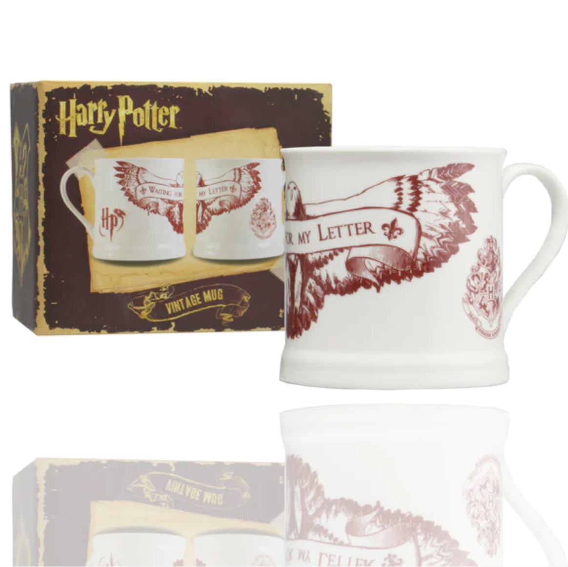 This magical Harry Potter mug is sure to get you ready for a hard day of magic. With a brand new vintage shape, the mug features Harry's owl Hedwig with a banner that reads 'Waiting for my letter', referring to the Hogwarts Acceptance Letter that new students receive prior to their first year at Hogwarts School of Witchcraft and Wizardry. It also features the Harry Potter logo and Hogwarts Crest showing all four houses. A wonderful addition to any Harry Potter display.