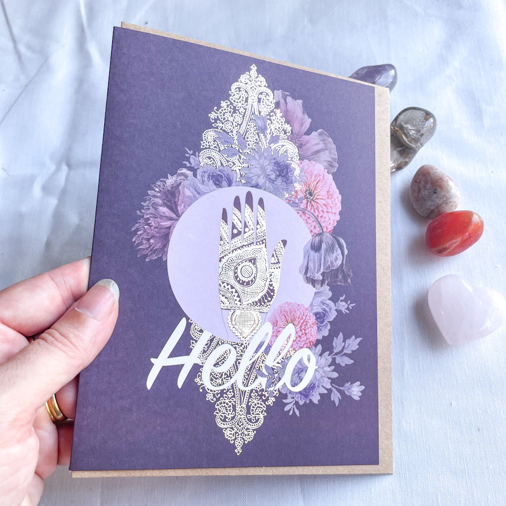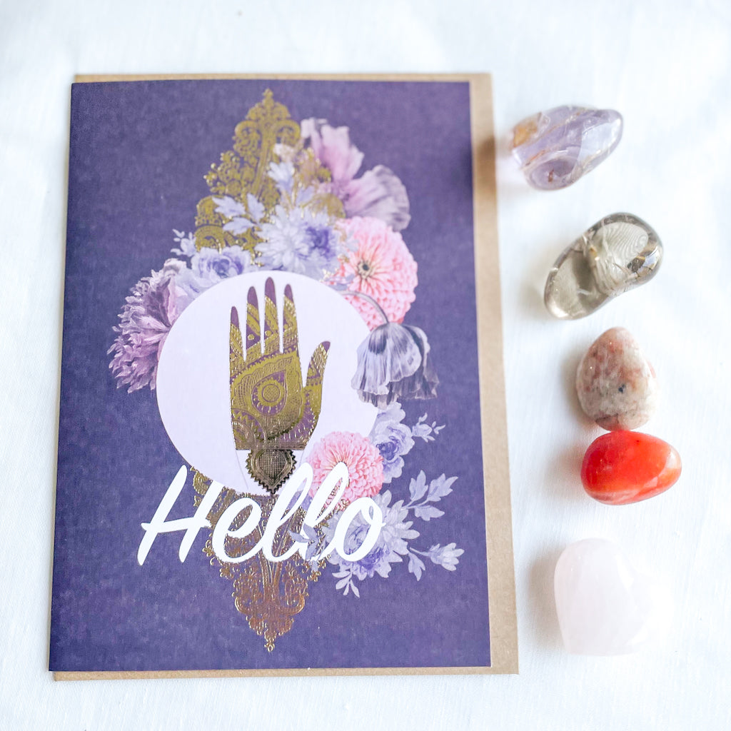 Purchase Hello palm gold foil greeting card online now from Six things shop Australia.
