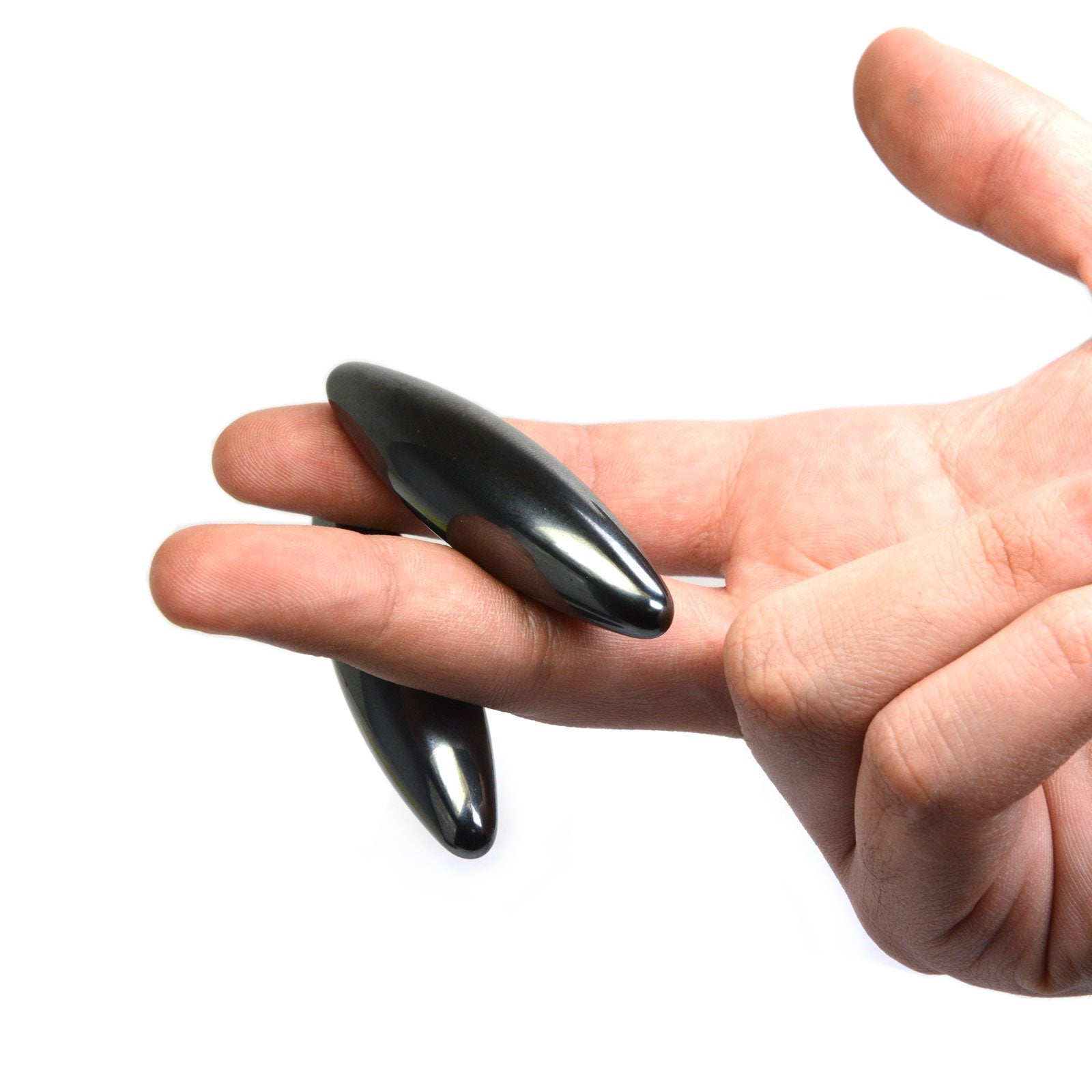 Pair of Hematite Zingers which are magnetically attracted to one another. Very strong magnets! Super fun as a fidget toy for adult or kid alike.