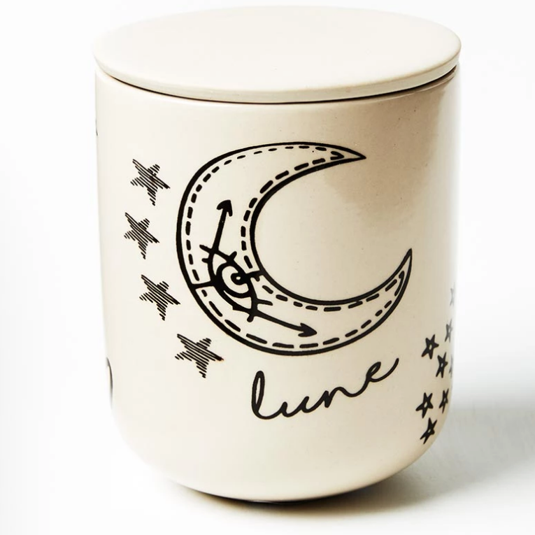 Perfect for storing your witchy herbs or trinkets, this la luna lune ceramic jar is a gorgeous addition to your altar bathroom vanity, or kitchen counter.