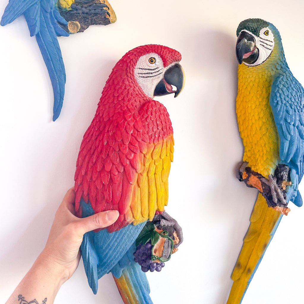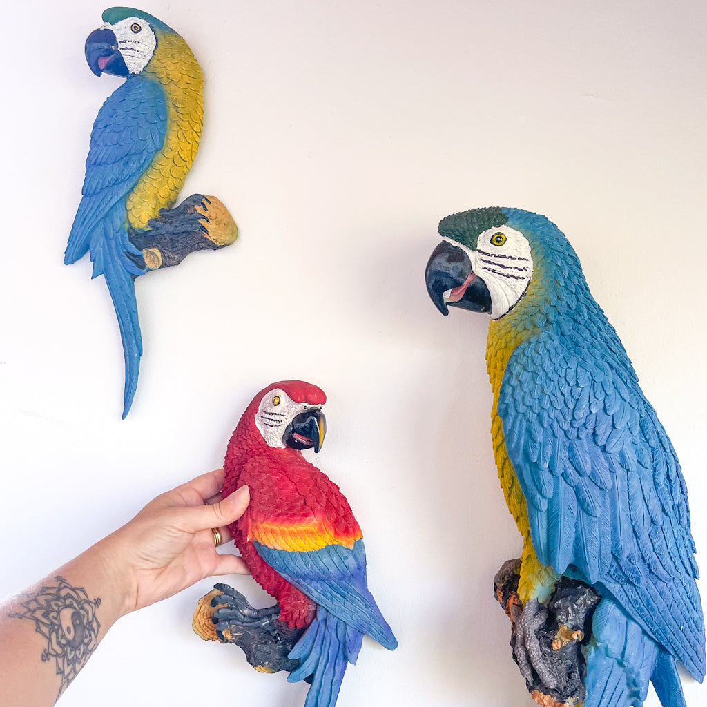 Purchase Large colourful Caribbean Macaw parrot wall hanging online now from Six things shop Australia.