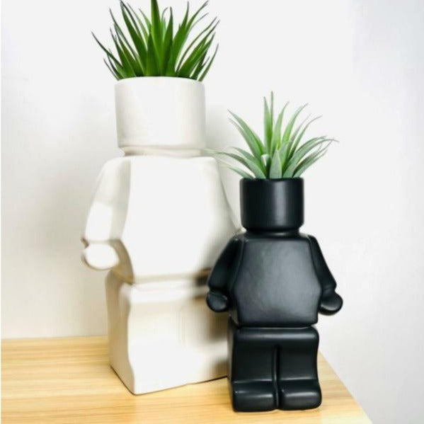 Start your own lego people army with these fun pots! No-one is too old for this fun vase / planter pot in the shape of a robot / lego block man / woman.